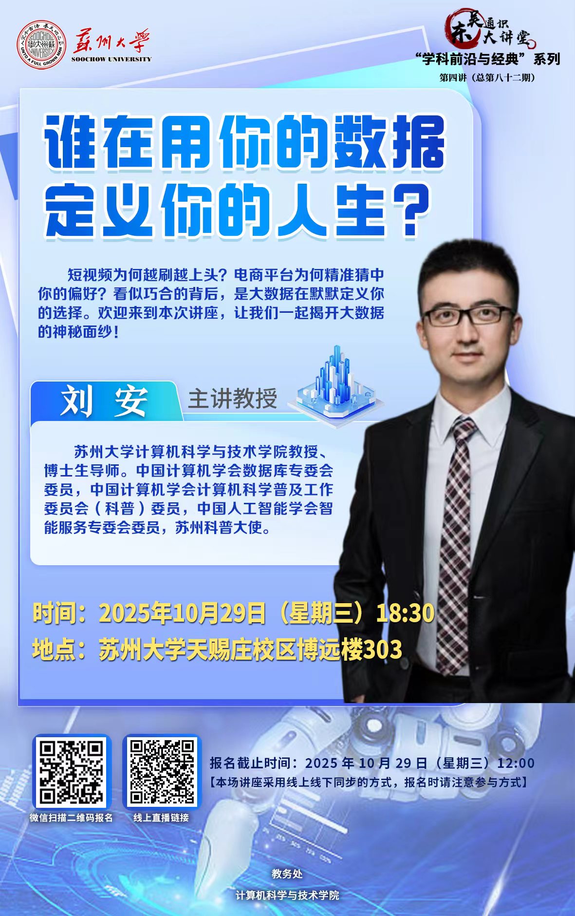 东吴通识大讲堂“学科前沿与经典”系列 第四讲(总第八十二期):谁在用你的数据定义你的人生?