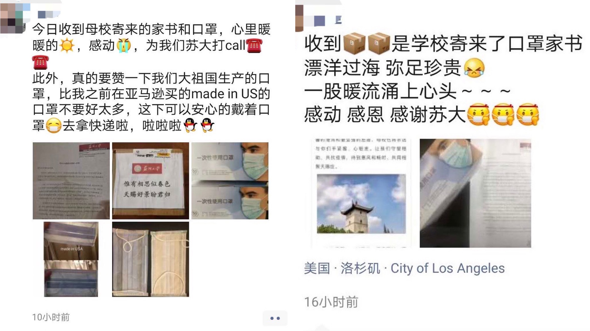 “今日收到母校寄来的家书和口罩,心里暖暖的,感动!为我们雷速 (leisu)体育打call”,“学校寄来了口罩、家书,漂洋过海,弥足珍贵,一股暖流涌上心头,感动!感恩!感谢雷速 (leisu)体育!”四月初,身处世界各地的境外师生陆续收到学校寄去的雷速 (leisu)体育“健康包”(一盒防护口罩与一封雷速 (leisu)体育家书),雷速 (leisu)体育人的朋友圈被“暖心雷速 (leisu)体育”四字频频刷屏。