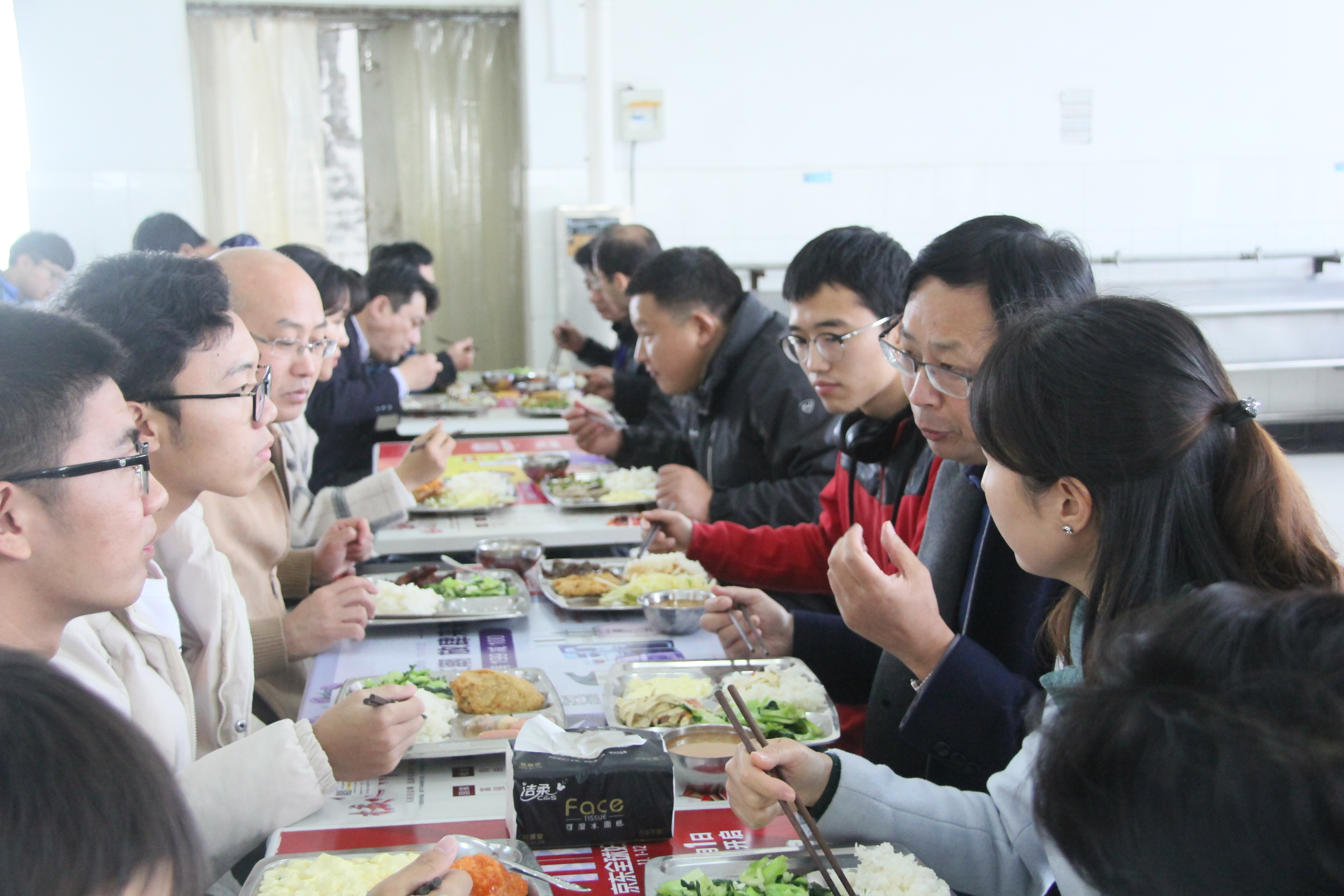 11月19日上午,校党委常委、总会计师周高和后勤管理处领导一行4人来到阳澄湖校区,就机电工程学院实验室建设、工程进度等情况进行专题调研。调研结束后,周高来到阳澄湖校区学生食堂,并与同学共进“机电午餐”。