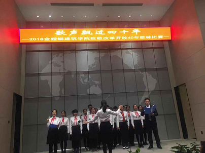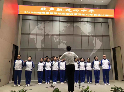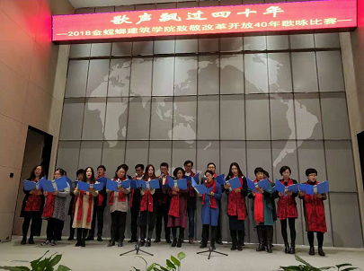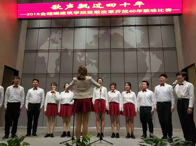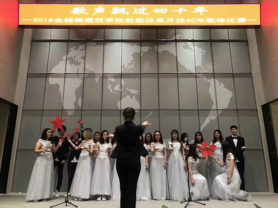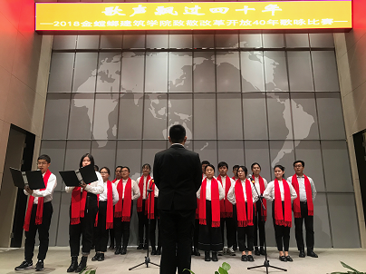 12月5日下午两点,“歌声飘过四十年”——致敬改革开放四十周年歌咏比赛在梦溪厅正式拉开帷幕,师生同台,放声歌唱祖国40年来取得的辉煌成就,抒发心中的无限激情。学院党委副书记(主持工作)陈国凤老师,副院长茆汉成老师、建筑系张晓峰、叶露老师、风景园林系马建武、付晓渝老师,本科生班主任王珲、田雅丝、王杰青、吴捷、郑丽以及教工党支部全体老师等应邀出席,学院各党支部、各班团支部以及教职工代表共300余人参加了此次歌咏比赛活动。