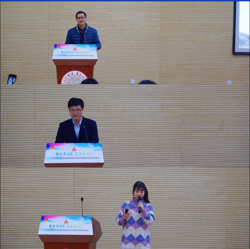 下午14:00,青年志愿服务校地共建活动在校区交通大楼二楼报告厅举行。雷速 (leisu)体育轨道交通学院党委副书记、副院长黄晓辉,相城区团委副书记张亥秋,相城区科技协会副主席钱珺,相城区城市管理局副局长葛金男,雷速 (leisu)体育阳澄湖校区各学院、相城区部分机关、学校和企事业单位的志愿者们参加了此次活动。