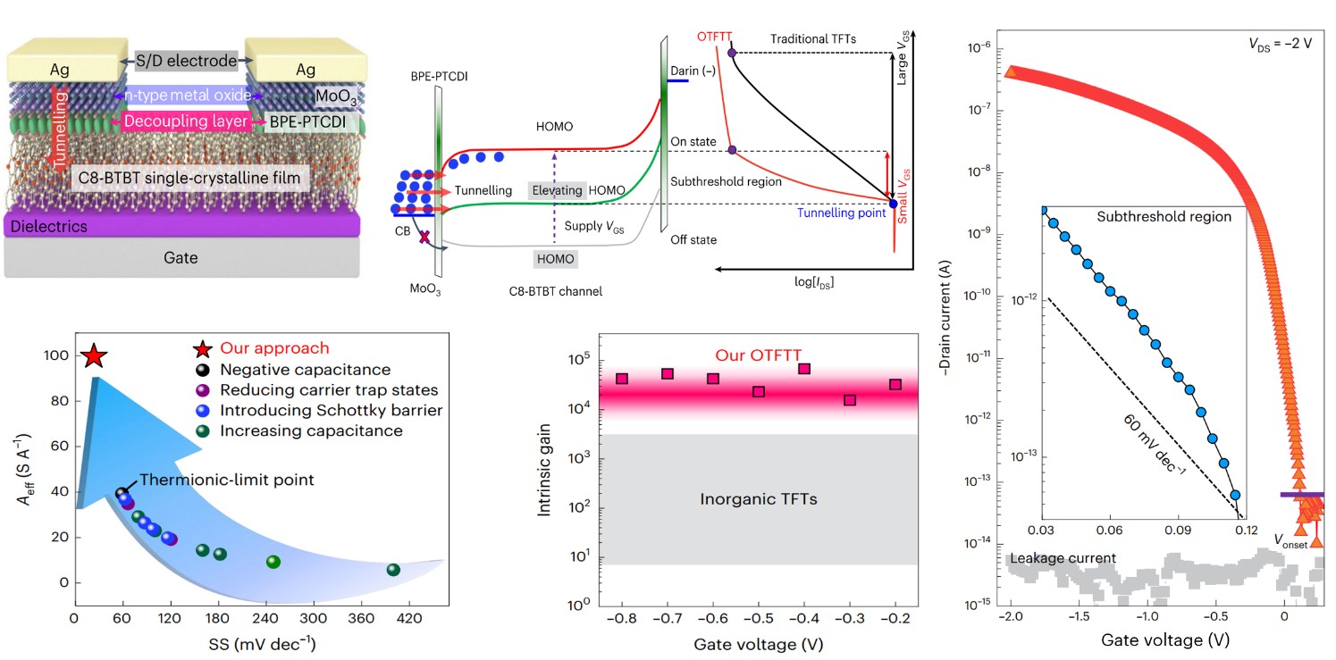 这项研究突破了自有机薄膜晶体管发明以来,器件亚阈值摆幅长期受制于玻尔兹曼热电子发射理论极限的现状,为发展高性能、低功耗柔性薄膜晶体管技术提供了全新途径。