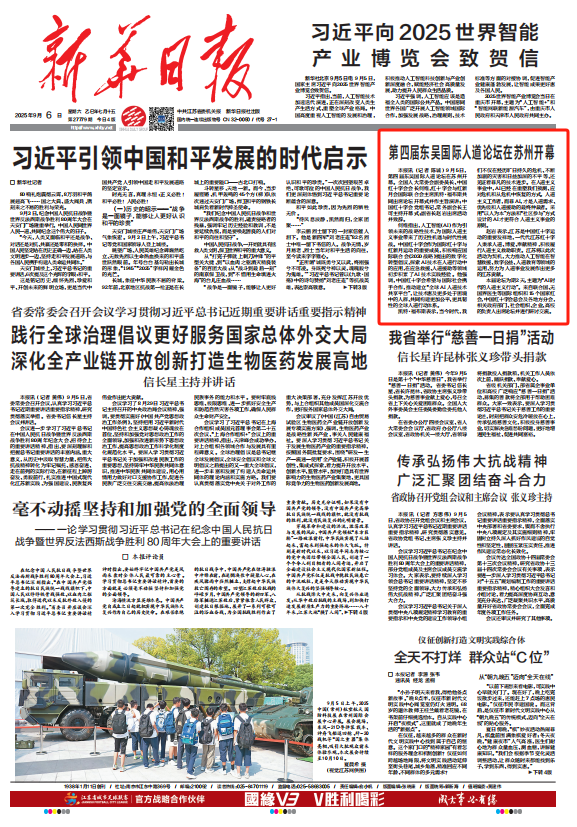 9月5日,第四届东吴国际人道论坛在苏州开幕。全国人大常委会副委员长、中国红十字会会长何维,红十字会与红新月会国际联合会主席凯特·福布斯共同出席论坛开幕式并作主旨演讲;中国红十字会党组书记、常务副会长王可主持开幕式;副省长赵岩出席活动并致辞。