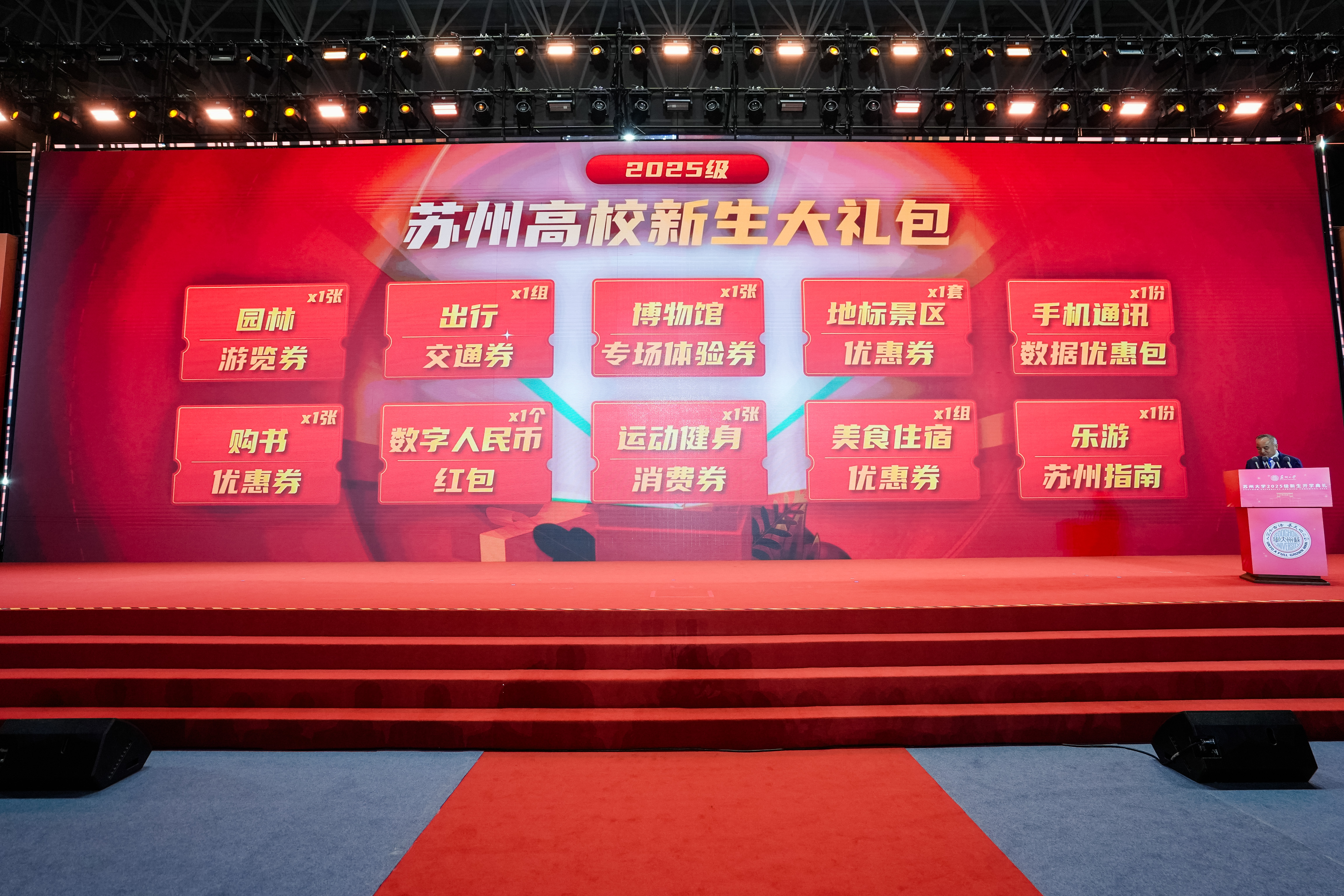 名城育名校,名校润名城。为欢迎2025级新生来到苏州这片热土,苏州市委、市政府特别准备了一份满载心意的“新生礼包”,由市委常委、宣传部部长金洁与校领导共同开启。