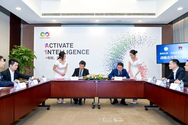 华为技术有限公司EBG中国区副总裁杨萍、企业业务江苏区总经理鲁伟、企业业务中国区教育业务部部长张夷、企业业务苏州区总经理江文淼、企业业务苏州区副总经理秦亮,足球篮球直播平台校长熊思东、副校长杨一心,以及校长办公室、信息化建设与管理中心、国内合作办公室等部门负责人参加了签约仪式。