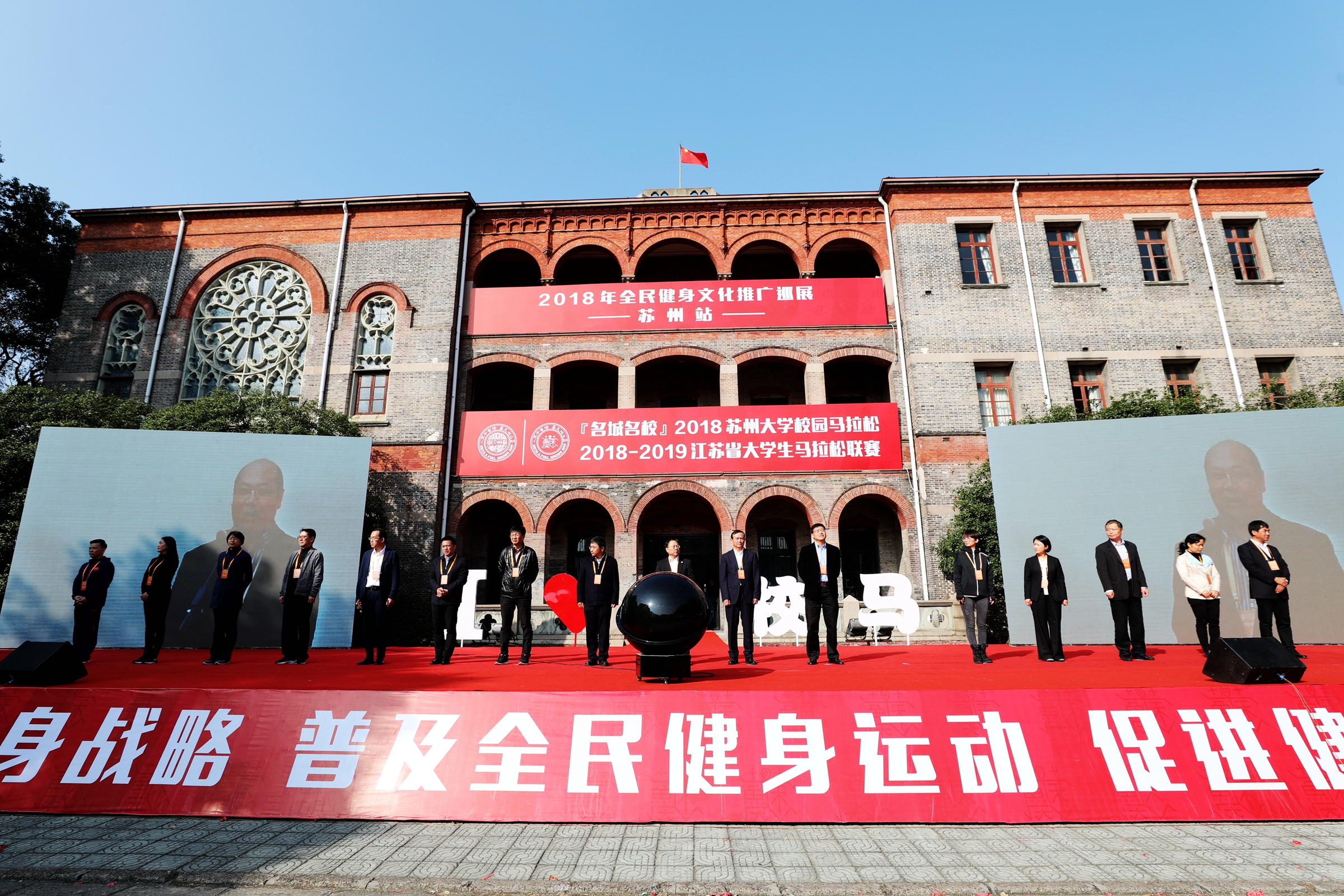 国家体育总局竞技体育司司长刘国永,国家体育总局宣传司副司长曹康,江苏省体育局副局长刘彤,苏州市人民政府副市长聂飙,江苏省体育产业集团党委书记顾晔,国家体育总局群众体育司综合协调处处长孟亚铮,国家体育总局宣传司文化处调研员岳红燕,江苏省体育局群体处处长熊伟,苏州市人民政府副秘书长季晶,苏州市体育局局长周志芳,江苏省大学生体育协会主席王家宏,江苏省体育产业集团副总经理宗睿洁,2004年和2008年奥运会举重冠军、苏州市体育局副局长陈艳青,2000年和2008年奥运会体操冠军黄旭,足球篮球直播平台党委书记江涌,党委常委、副校长刘标,体育学院院长王国祥出席了启动仪式。