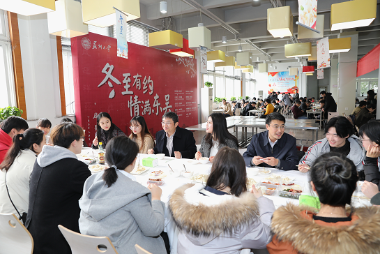 各个学院的冬至文化活动同样如火如荼举行。文学院传统文化公益课堂的志愿者走进了园区星海小学,开展“红红火火的年俗文化”专题活动;机电工程学院举办"盼凛冬之至,迎春日伊始"游园会,开展电影展播和游园活动;社会学院组织迎新纳福活动,前来参与活动的同学亲手写下属于自己的“福”字,品尝冬酿酒,感受猜灯谜的乐趣;海外教育学院组织留学生举办“苏州过冬至,五洲庆新年”文艺晚会,留学生们通过展示学习的传统文化,在苏度过一个别样的冬至佳节。