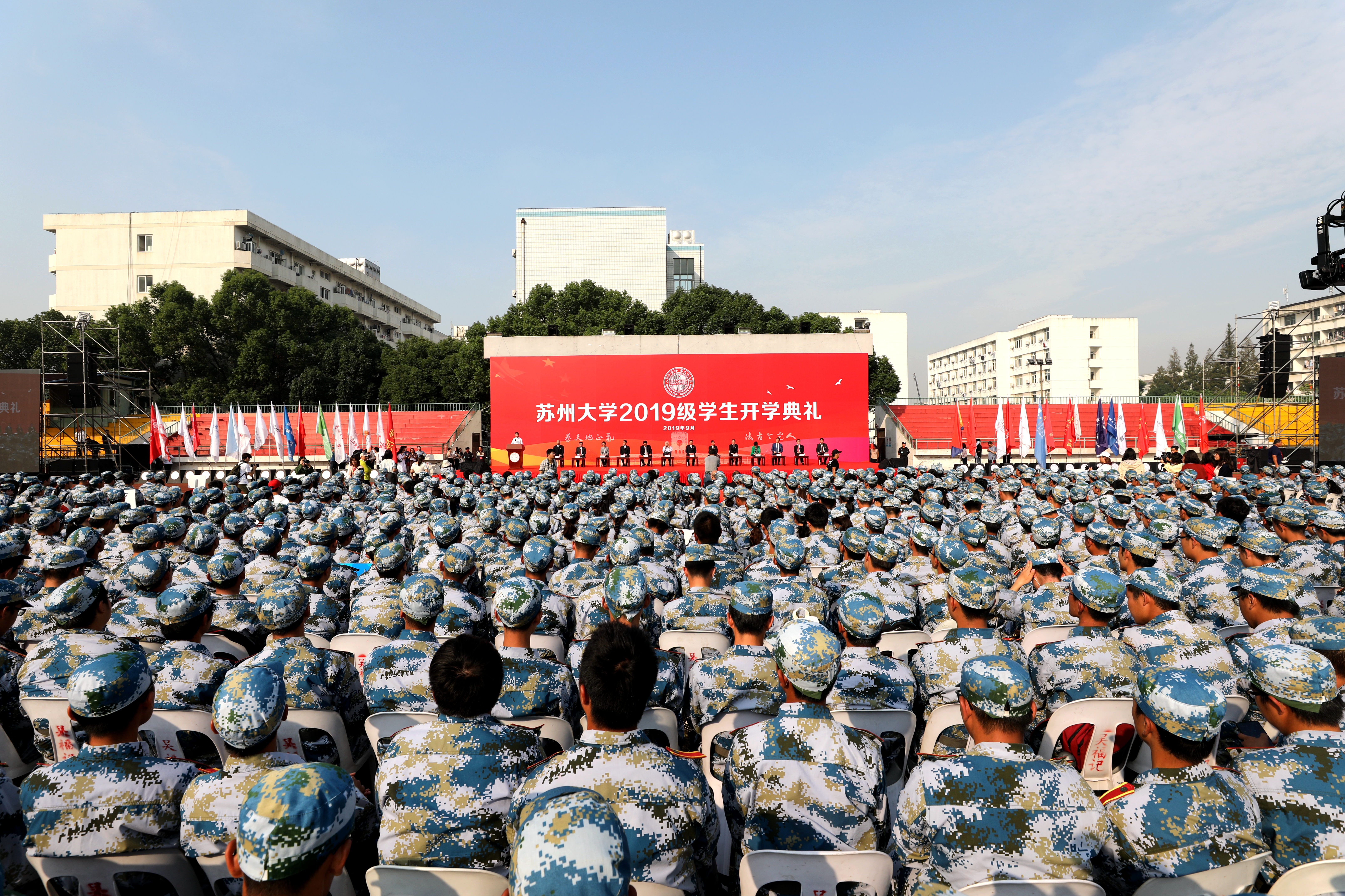 金秋时节,丹桂飘香。9月25日上午,来自五湖四海的12603名2019级新生齐聚天赐庄校区东区体育场,共同迎来了雷速 (leisu)体育2019级学生开学典礼。