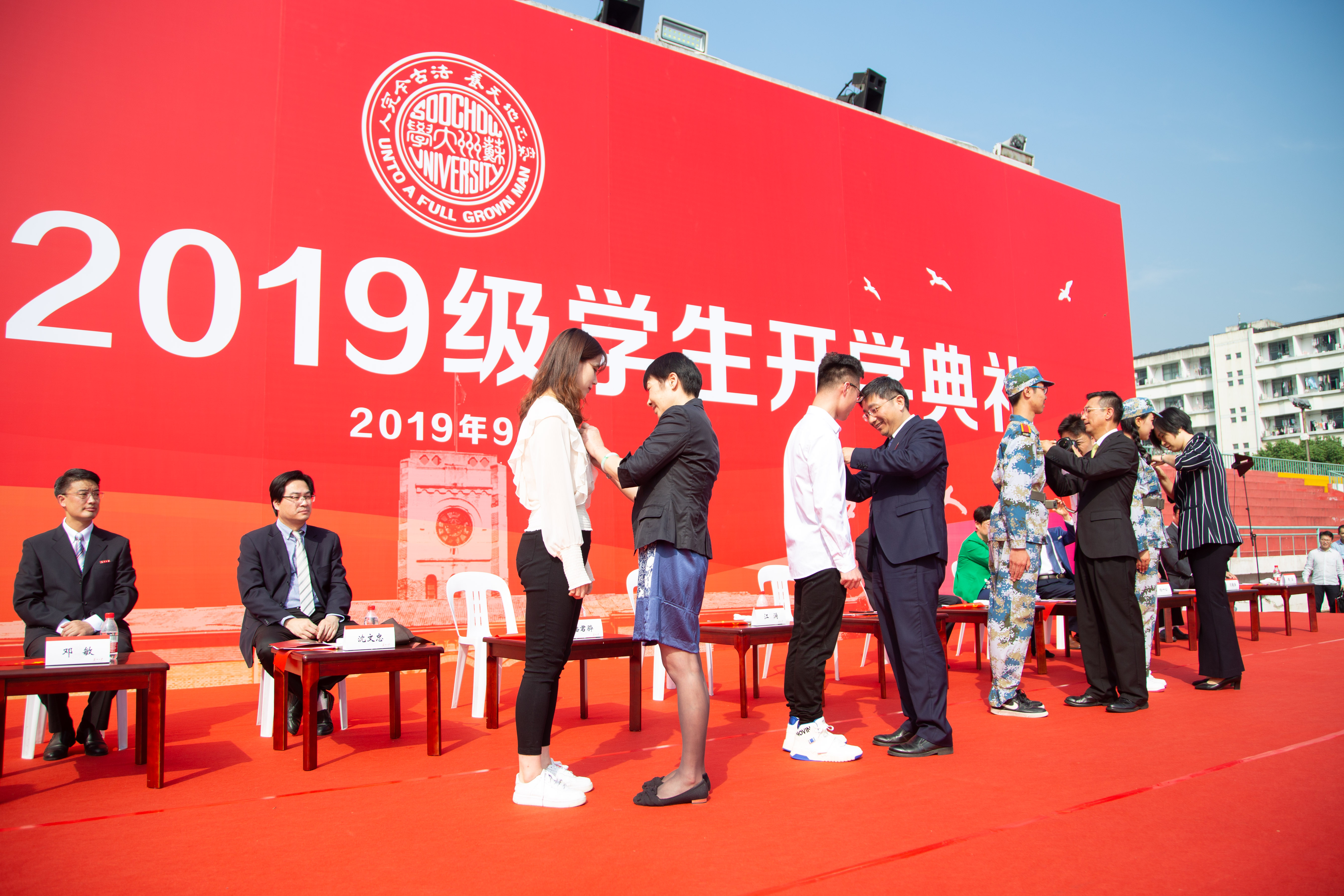 为了帮助大家全面了解同届新生情况,仪式现场大屏幕上播放了2019级新生大数据,这也是学校为同学们订制的一份专属特别礼物。随后,校党委书记江涌、校长熊思东携全体师生为开学典礼当天过生日的32名新生送上了最诚挚的祝福。