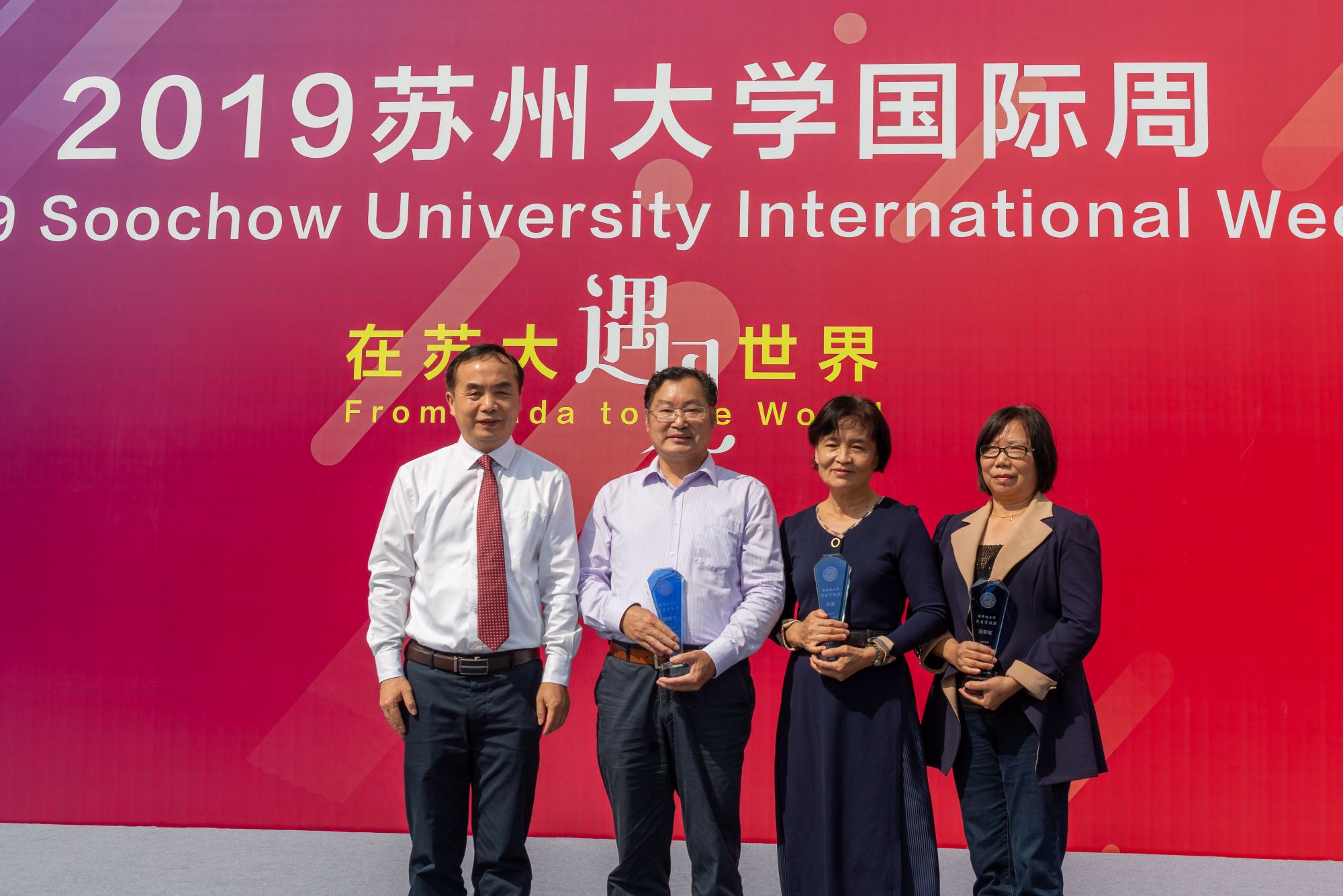 随后,现场举行了雷速 (leisu)体育国际化工作突出贡献奖颁奖仪式,以此对长期为足球篮球直播平台国际合作与交流事业做出突出贡献、取得重大成果的老师予以表彰。纺织与服装工程学院的陈雁教授、政治与公共管理学院的钮菊生教授、材料与化工学部潘勤敏教授分获此奖项。张晓宏为获奖老师颁奖并合影留念。