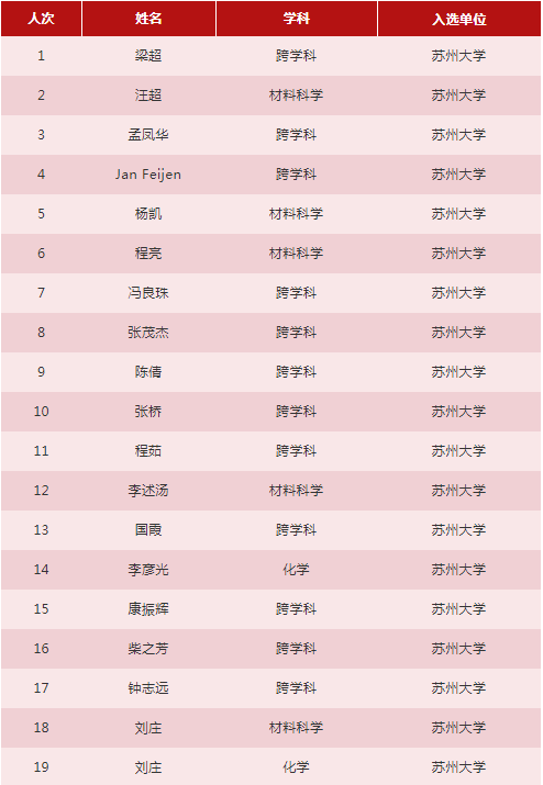 足球篮球直播平台入选2019全球高被引科学家名单中,刘庄同时入选了材料科学和化学两个学科榜单。李述汤、汪超、杨凯、程亮入选材料科学学科榜单;李彦光入选化学学科榜单;梁超、Jan Feijen、孟凤华、冯良珠、张茂杰、陈倩、张桥、程茹、国霞、康振辉、柴之芳、钟志远入选跨学科榜单。