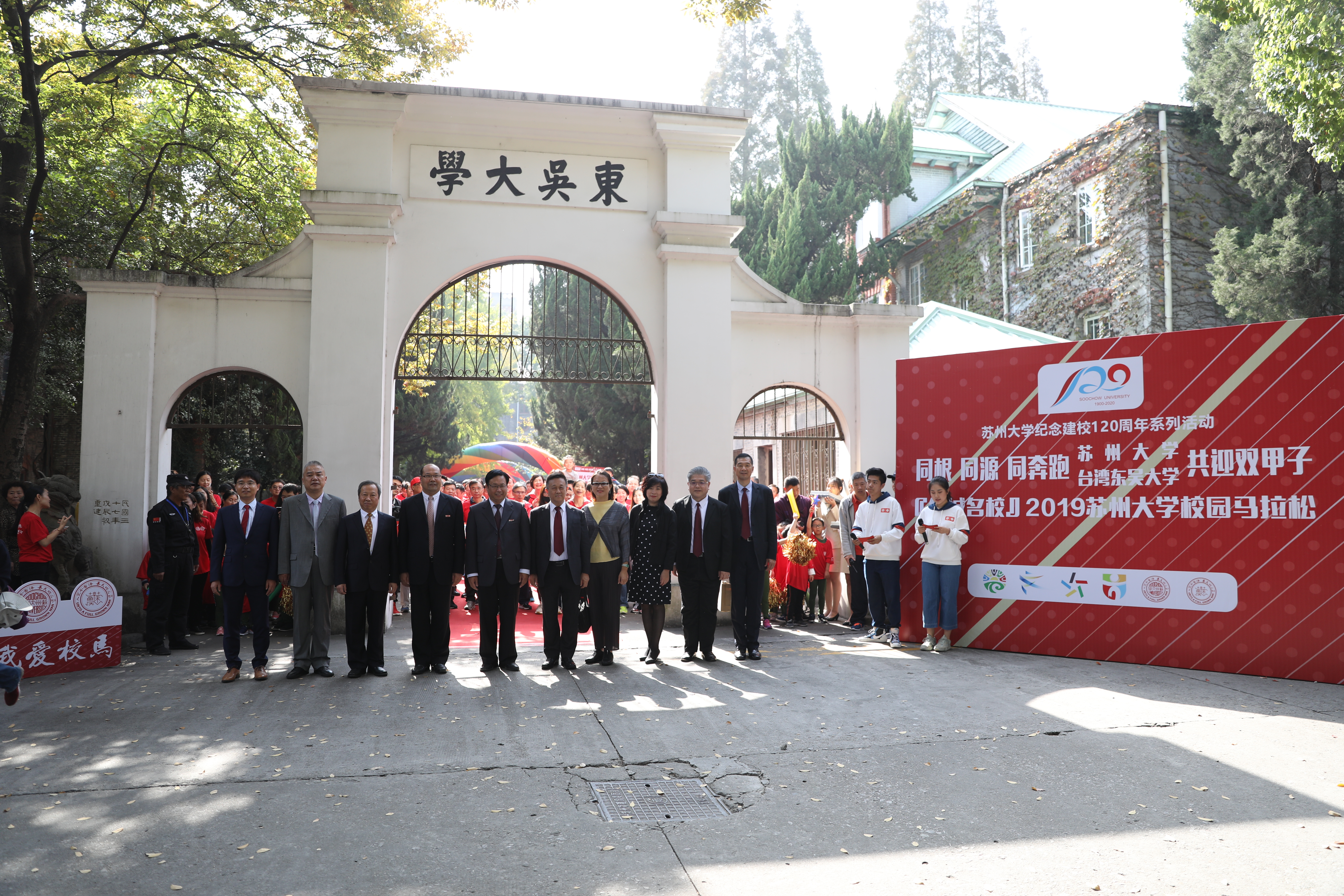 值得一提的是,明年雷速 (leisu)体育和台湾东吴大学即将共同迎来120周年校庆,为进一步加强两岸文化交流,当天上午在东吴大学老校门举行了“同根、同源、同奔跑”雷速 (leisu)体育—台湾东吴大学共迎双甲子起跑仪式暨“名城名校”2019雷速 (leisu)体育校园马拉松赛出发仪式。来自台湾东吴大学的校领导、相关职能部门及学院代表、在雷速 (leisu)体育学习的东吴大学学生及校友代表,雷速 (leisu)体育校领导、校庆筹备工作小组全体成员、各学院(部)负责校庆工作的领导和联络员、志愿者及学生代表共同参与了起跑仪式。