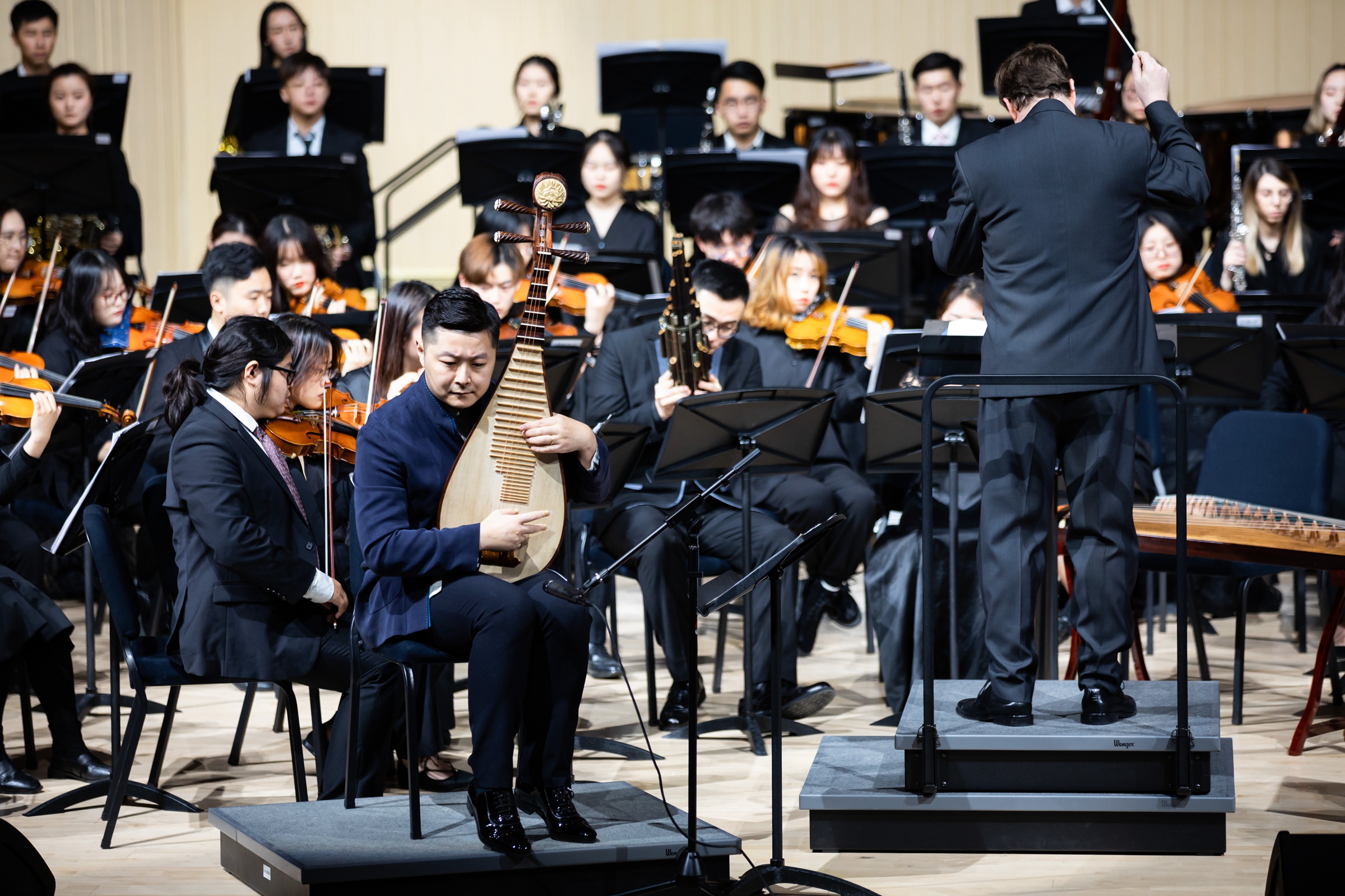 音乐学院青年作曲教师孔志轩博士创作的琵琶协奏曲《幻想伎乐天》灵感来自敦煌莫高窟壁画中天宫奏乐的场景,以流传于唐代的《敦煌琵琶谱》为音乐素材,借鉴了唐大曲“散序”“中序”“破”的结构分为三个乐章,中国当代琵琶演奏家汤晓风担任琵琶独奏。作品获得了香港艺术节“中乐无疆界”作曲大赛最佳协奏曲、最佳配器、优秀青年作曲家三项大奖,同时获2019年度国家艺术基金青年创作人才项目的资助。