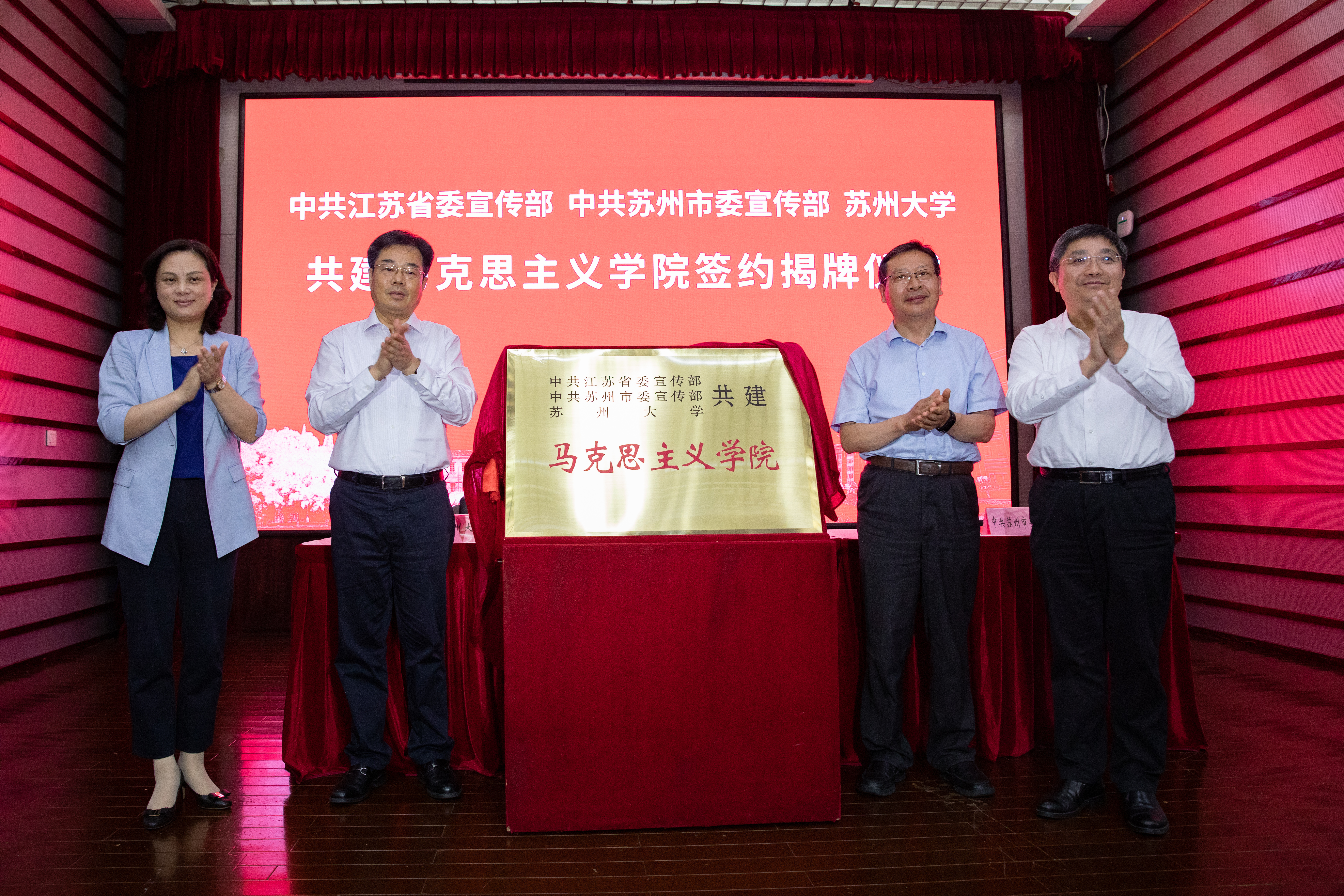 焦建俊表示,建强建好高校马克思主义学院,是党中央交给我们的重大政治任务,事关党的教育方针的贯彻落实,事关办什么样的大学,事关培养什么样的人。围绕深入推进共建工作,他提出:一是要强化政治自觉,把准共建方向。要牢牢把握学习宣传贯彻习近平新时代中国特色社会主义思想这一首要任务,把马院建成学习研究宣传党的创新理论的桥头堡、主力军。二是要强化使命担当,发挥共建优势。要按照习近平总书记提出的“八个统一”要求,更加重视实践育人,切实抓好课程思政,推动学校其他各门课程和各个阵地同频共振、同向发力,形成全程育人、全员育人、全方位育人的大思政格局。三是要强化学科建设,深化共建内涵。大力推进学院一级学科博士点建设,加快马克思主义理论各二级学科建设,努力把思想政治教育专业建成一流本科专业,推动学科建设不断迈上新台阶。四是强化创新驱动,彰显共建成效。省委宣传部、市委宣传部、苏州大学以及省有关单位要分工合作、各履其职、各尽其责,推动共建工作有序展开、行稳致远,构建起同向同行、共享共赢的“教、学、研、用共同体”。