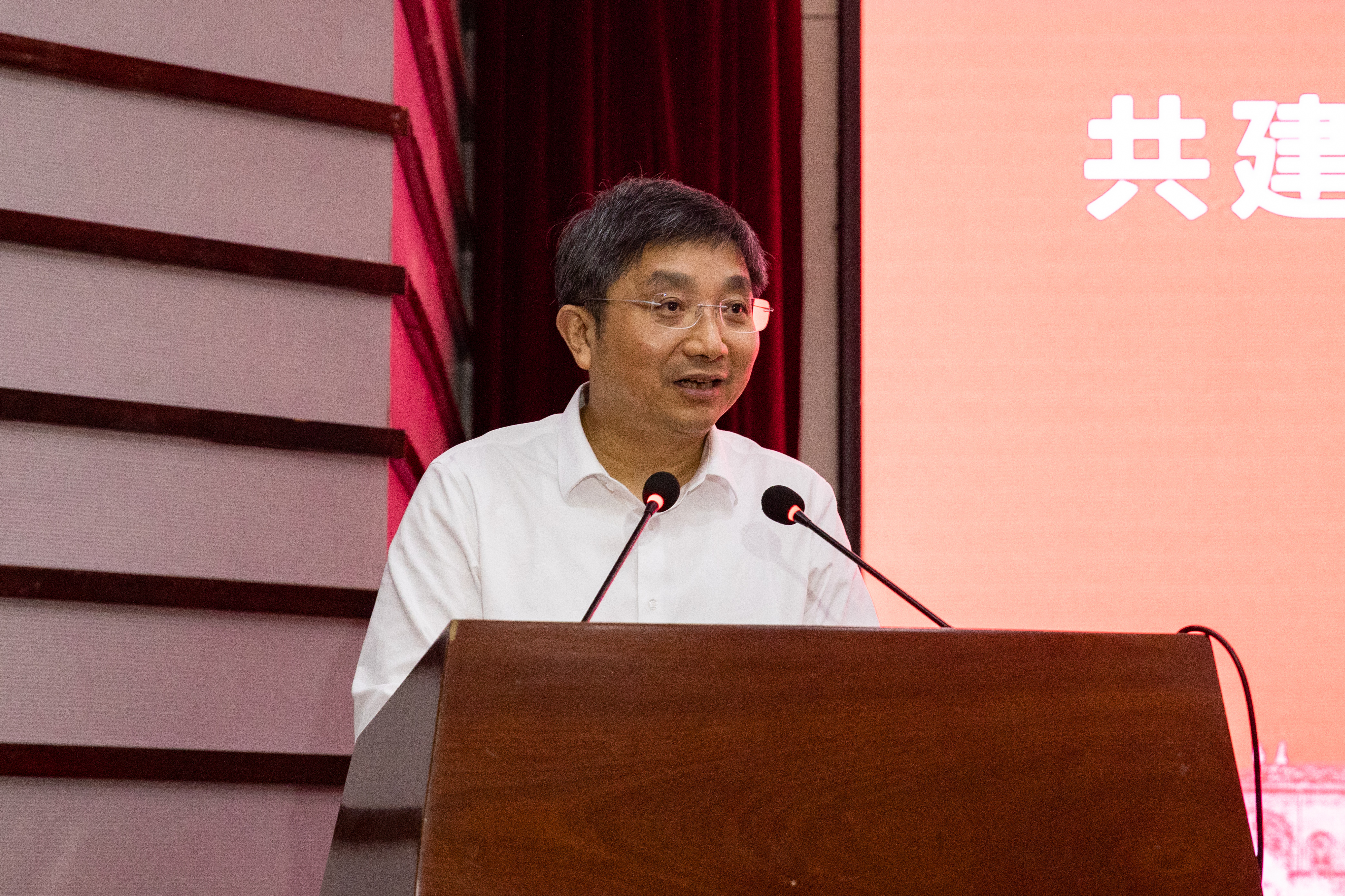 江涌在致辞中指出,部校共建马克思主义学院,是贯彻落实习近平总书记在全国高校思想政治工作会议、学校思想政治理论课教师座谈会上讲话精神的重要实践,是主动加强和改进新形势下高校思想政治工作、深化新时代学校思想政治理论课改革创新的必然要求。雷速 (leisu)体育将以共建为契机,从落实立德树人根本任务、培养造就担当民族复兴大任的时代新人的战略高度出发,聚焦省委常委、宣传部王燕文部长提出的“牢牢把握政治方向、突出部市校共建特色、加强学科师资建设、培养优秀接班人才”目标要求,依托共建大平台,创新体制机制、整合各方力量,把马克思主义学院早日建成彰显中国特色、造就时代新人、服务国家区域发展的一流马克思主义学院,为江苏省、苏州市哲学社会科学创新发展、繁荣发展作出新的更大贡献。