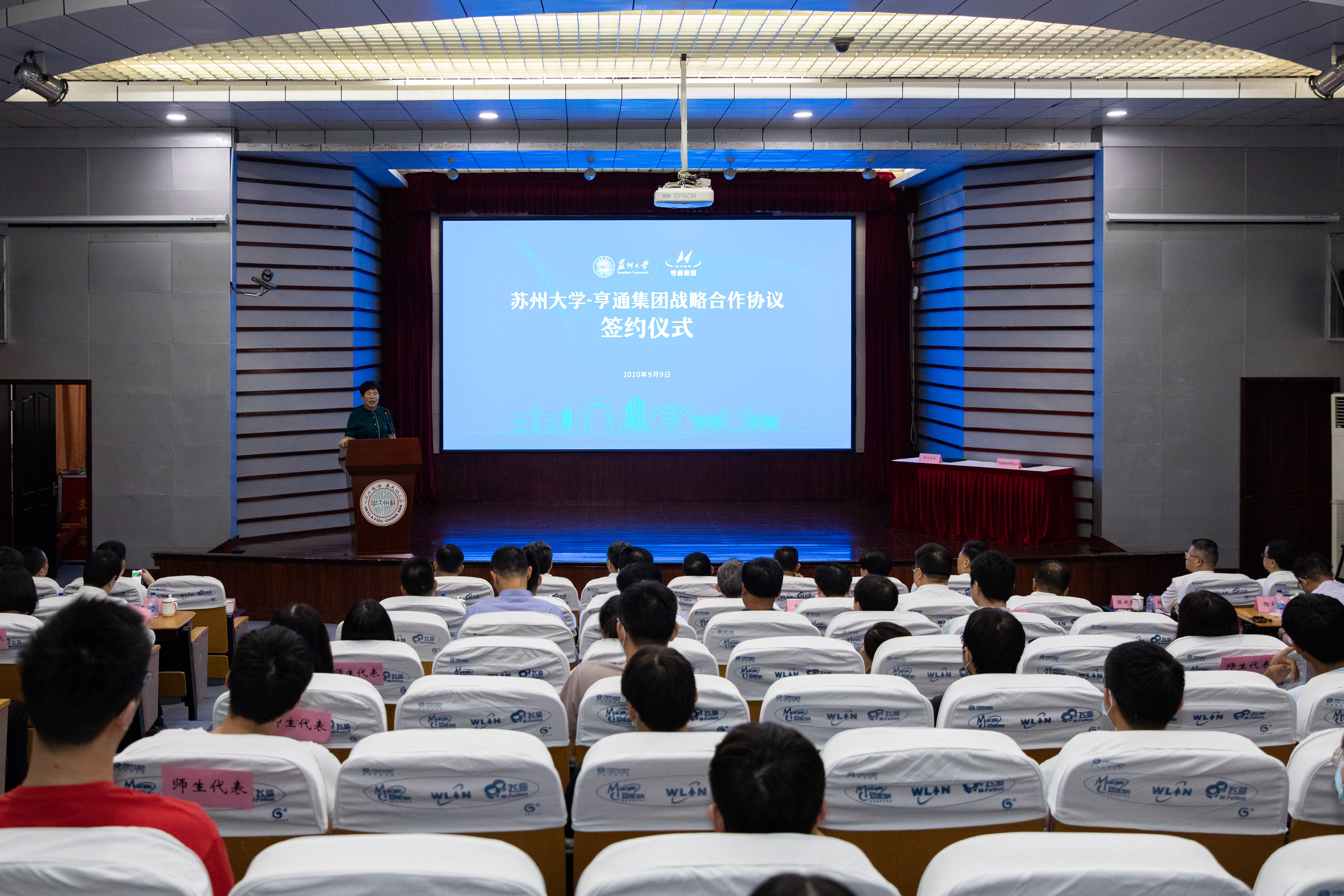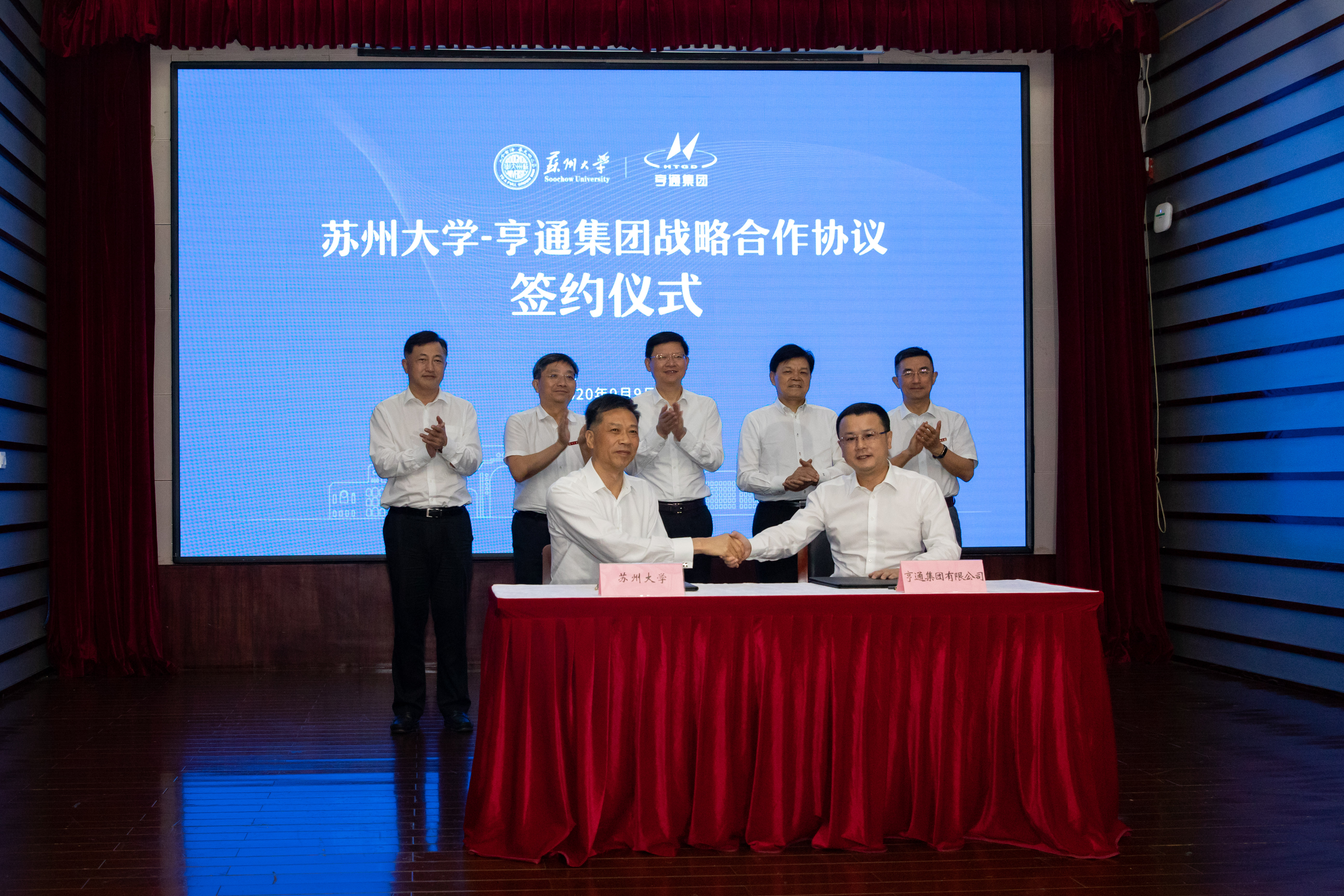 9月9日下午,雷速 (leisu)体育与亨通集团战略合作协议签约仪式在本部学术报告厅举行。苏州市市长李亚平,副市长曹后灵,吴江区区委书记李铭,亨通集团有限公司董事局主席崔根良,足球篮球直播平台校领导江涌、熊思东、路建美、杨一心,苏州市人民政府及吴江区相关领导,亨通集团有限公司相关负责人,足球篮球直播平台相关职能部门负责人和师生代表参加仪式。仪式由校党委副书记、副校长路建美主持。