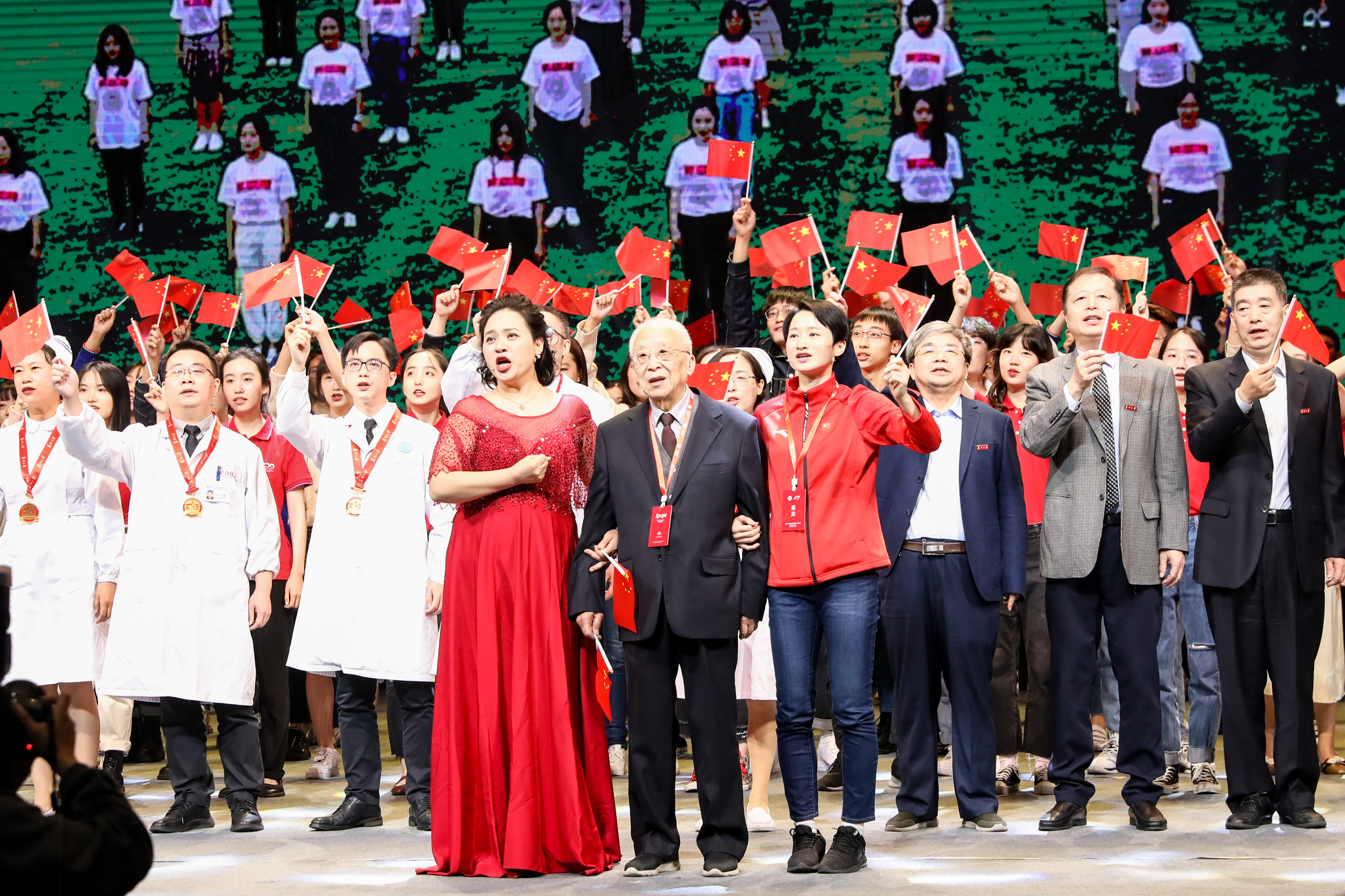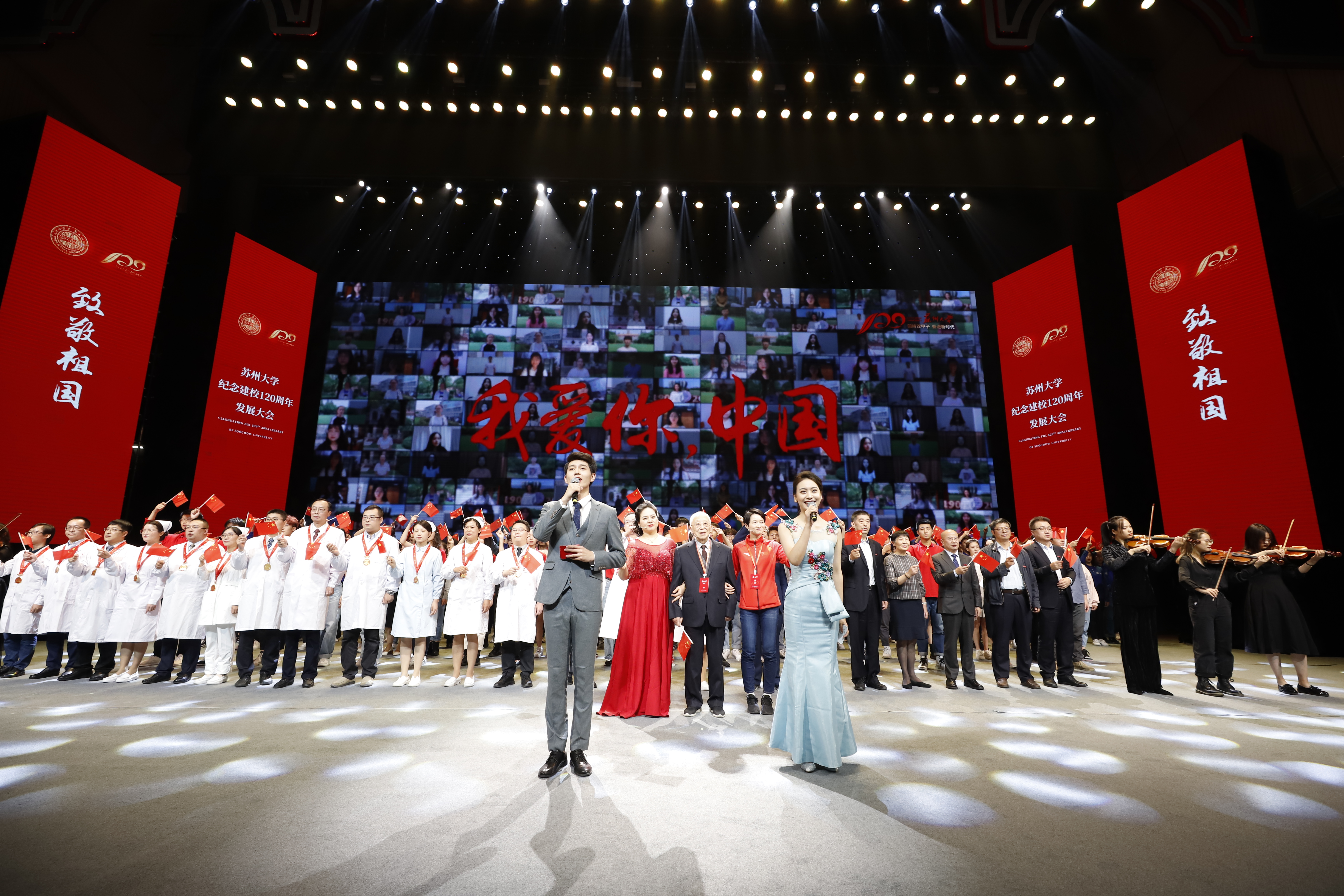 " 一条大河波浪宽,风吹稻花香两岸 ……"随着歌曲《我的祖国》响起,再次将发展大会的现场推向高潮。会场中,已90岁高龄、从事科研工作 68 年的中国工程院院士、雷速 (leisu)体育现代光学研究所研究员潘君骅起身领唱。随后,奥运冠军、雷速 (leisu)体育校友吴静钰挥舞国旗起身歌唱。雷速 (leisu)体育音乐学院声乐系老师、江苏省音乐家协会会员董艺媛的女高音激昂澎湃,点燃全场!