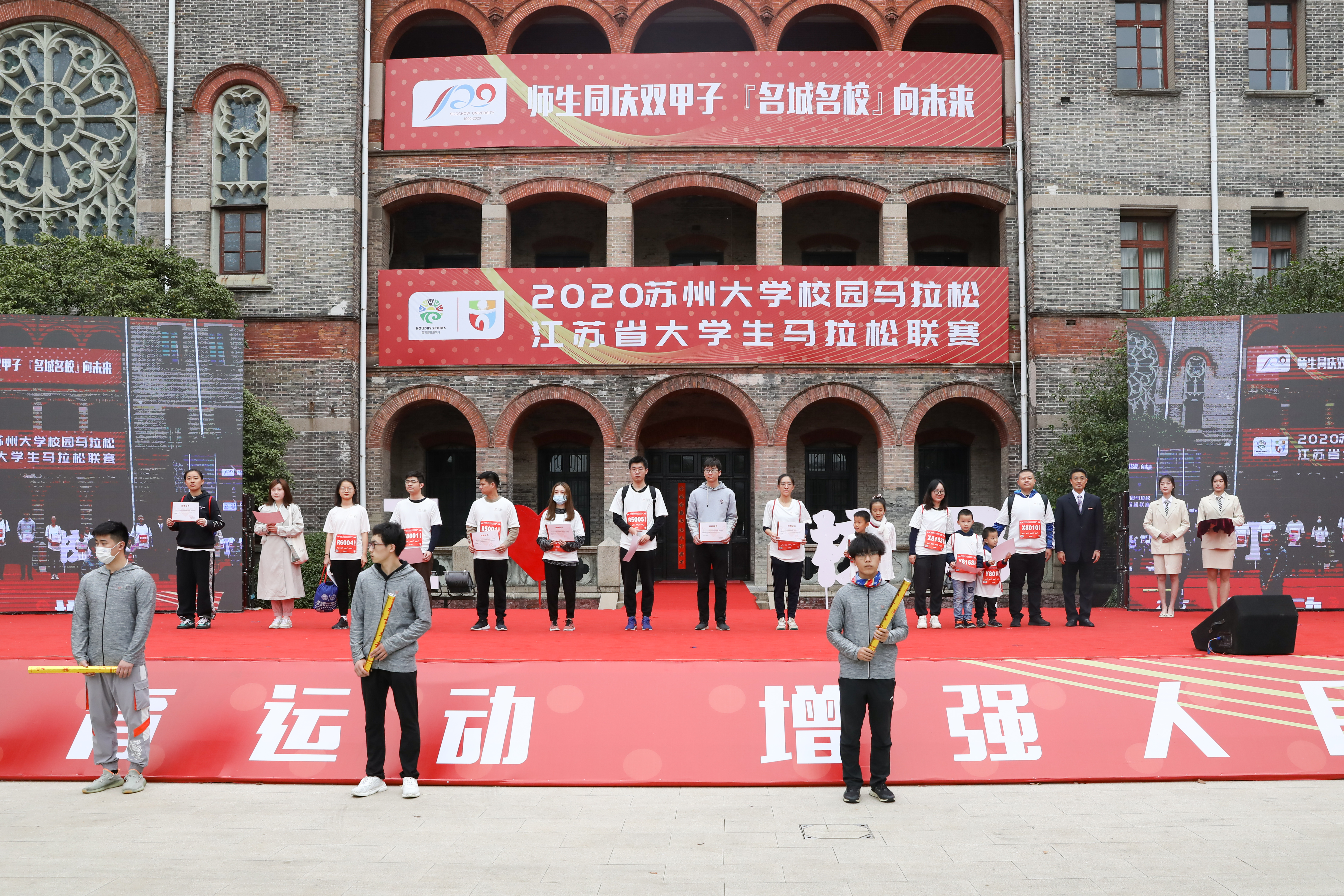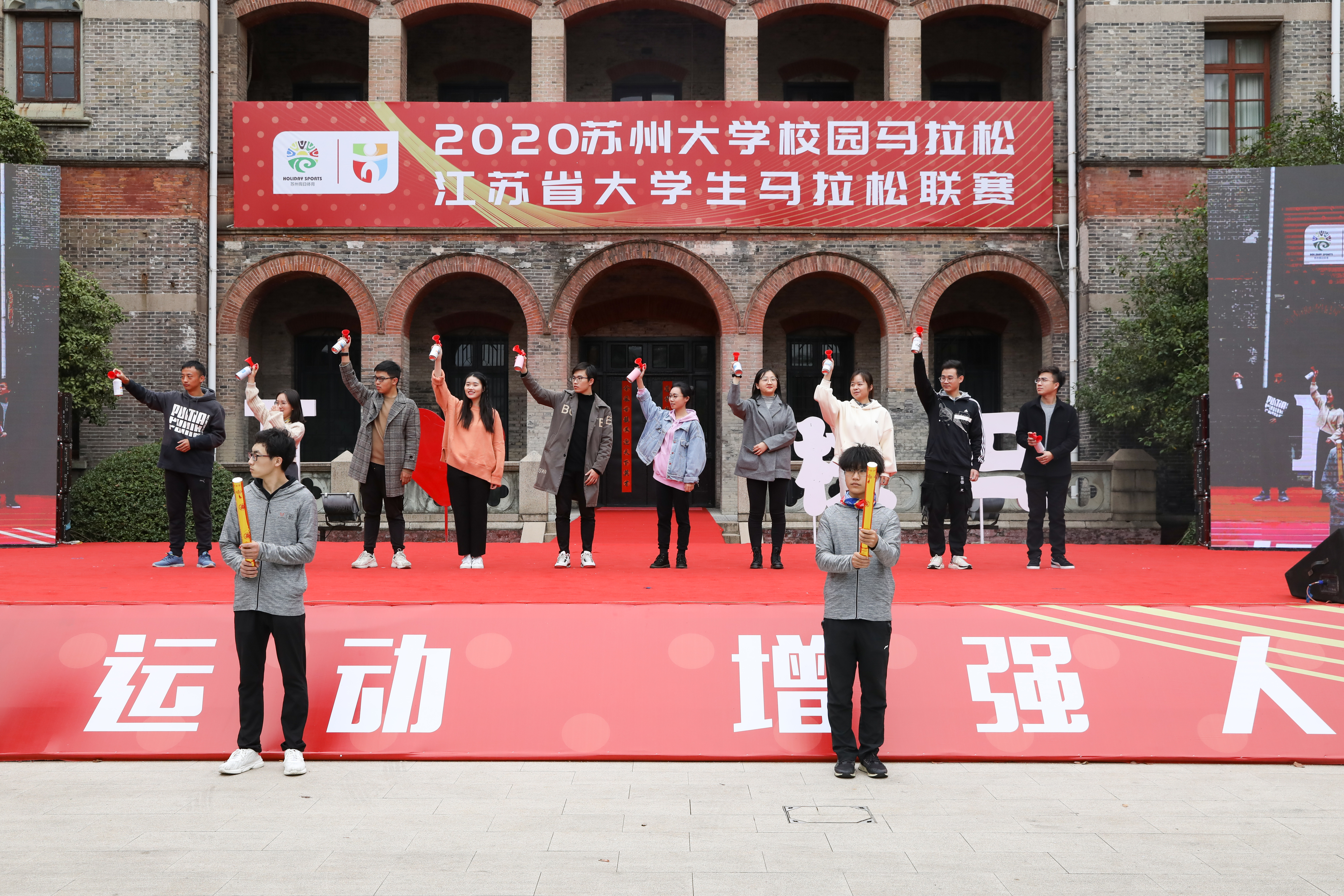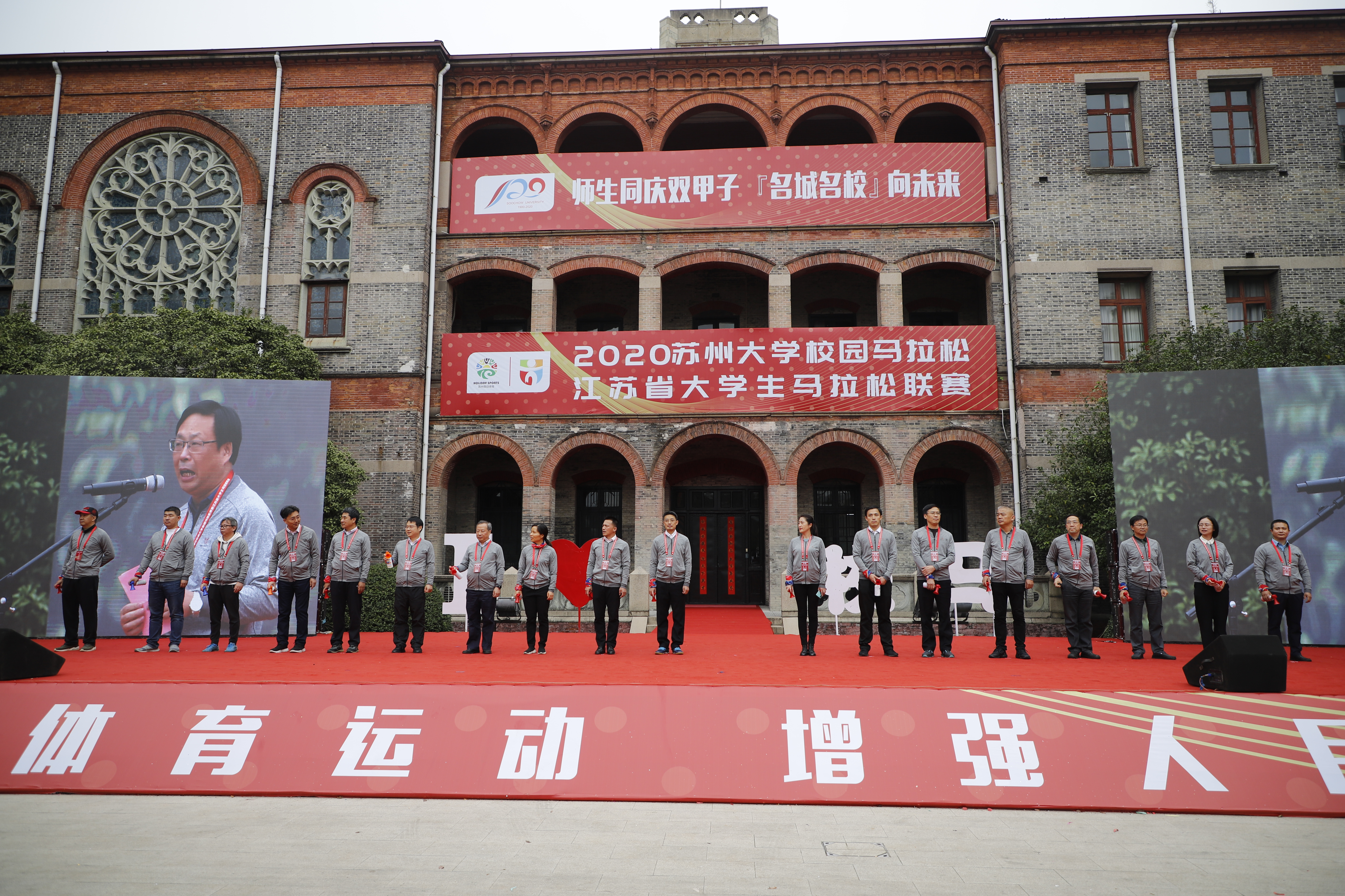 “师生同庆双甲子,名城名校向未来!”在激动澎湃的音乐声中,出席活动的领导和嘉宾入场,并为2020雷速 (leisu)体育校园马拉松赛暨江苏省大学生马拉松联赛的十公里赛和半程赛发枪。