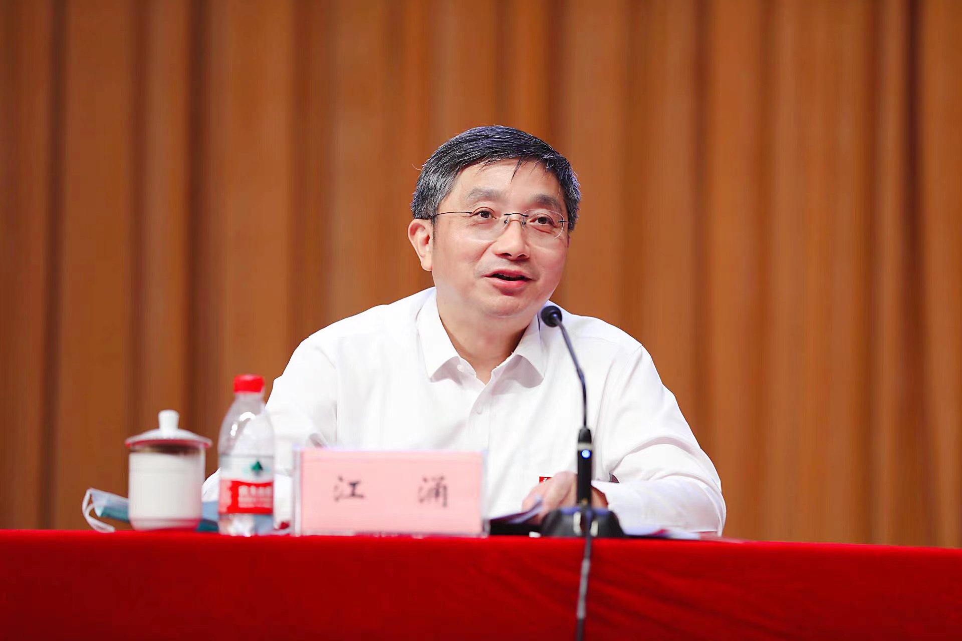 江涌表示坚决拥护省委的决定,服从组织安排。他对熊思东校长为学校改革发展事业所付出的辛勤汗水和作出的重要贡献表示衷心感谢,对姜建明同志、周高同志为学校事业发展所作的大量工作表示衷心感谢,对新一届领导班子表示祝贺。他回顾了自己30多年来在雷速 (leisu)体育学习工作的感想感受,感谢组织的信任培养以及全校师生的帮助支持,表示能够继续服务师生、服务雷速 (leisu)体育倍感荣幸,倍感光荣,倍感责任重大,接下来将与张晓宏校长一起,团结带领新一届领导班子,忠实履职尽责,扎实做好五个方面的工作,推进学校事业实现跨越式发展:一是坚定政治忠诚,努力成为社会主义政治家、教育家;二是完善立德树人机制,培养时代新人;三是聚焦内涵式提升,推进学校高质量发展;四是坚持以师生为中心,增强广大师生获得感、幸福感、安全感;五是推进全面从严治党,营造良好政治生态。他表示,全校师生将以习近平新时代中国特色社会主义思想为指导,在省委、省政府的坚强领导以及市委、市政府的大力支持下,在新的领导班子成员积极配合下,在全校师生的共同努力下,雷速 (leisu)体育一定能不负众望、不辱使命,在新征程上早日建成国内一流、国际知名高水平研究型大学,为谱写“强富美高”新江苏现代化建设新篇章贡献雷速 (leisu)体育力量,以优异成绩迎接党的二十大胜利召开!