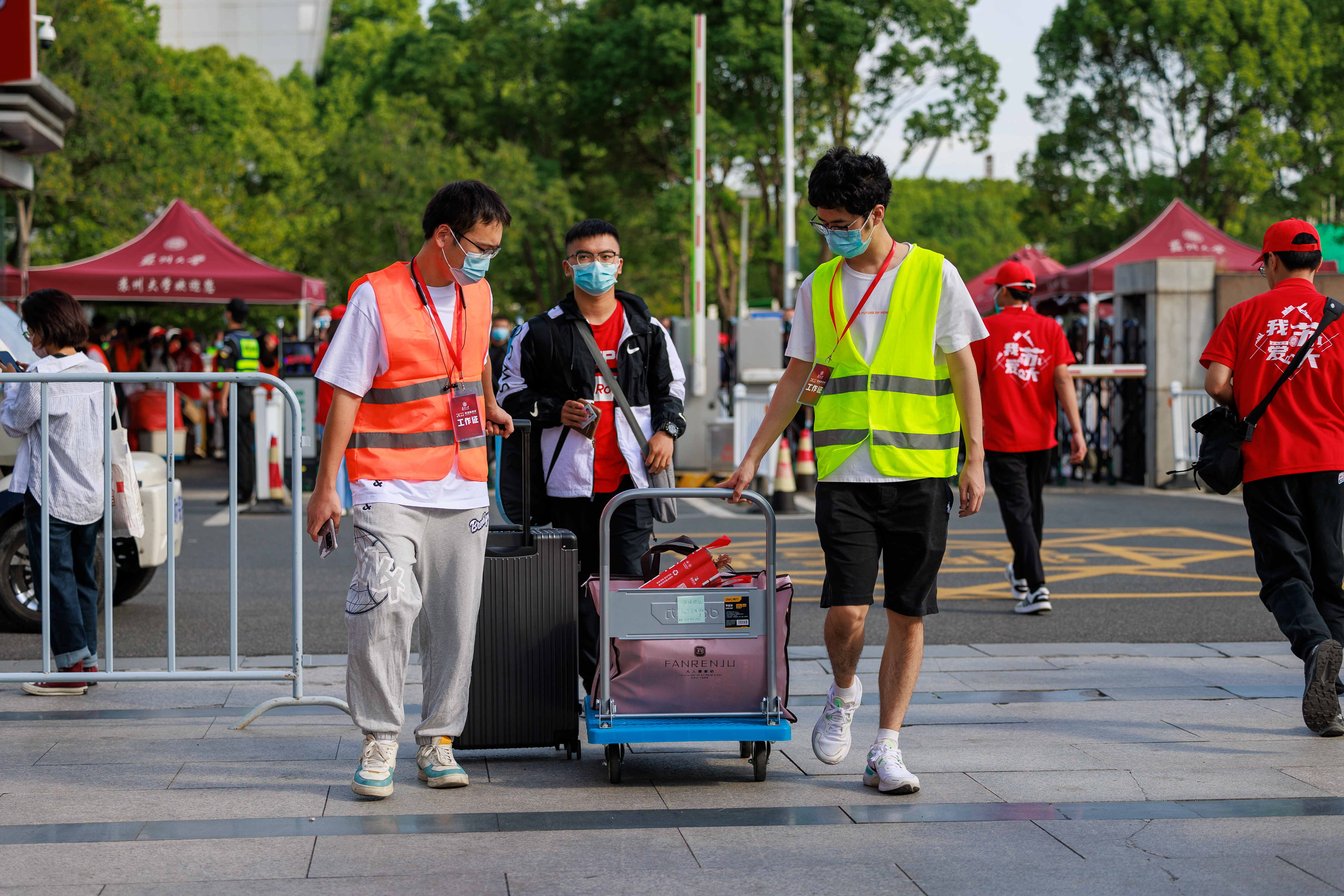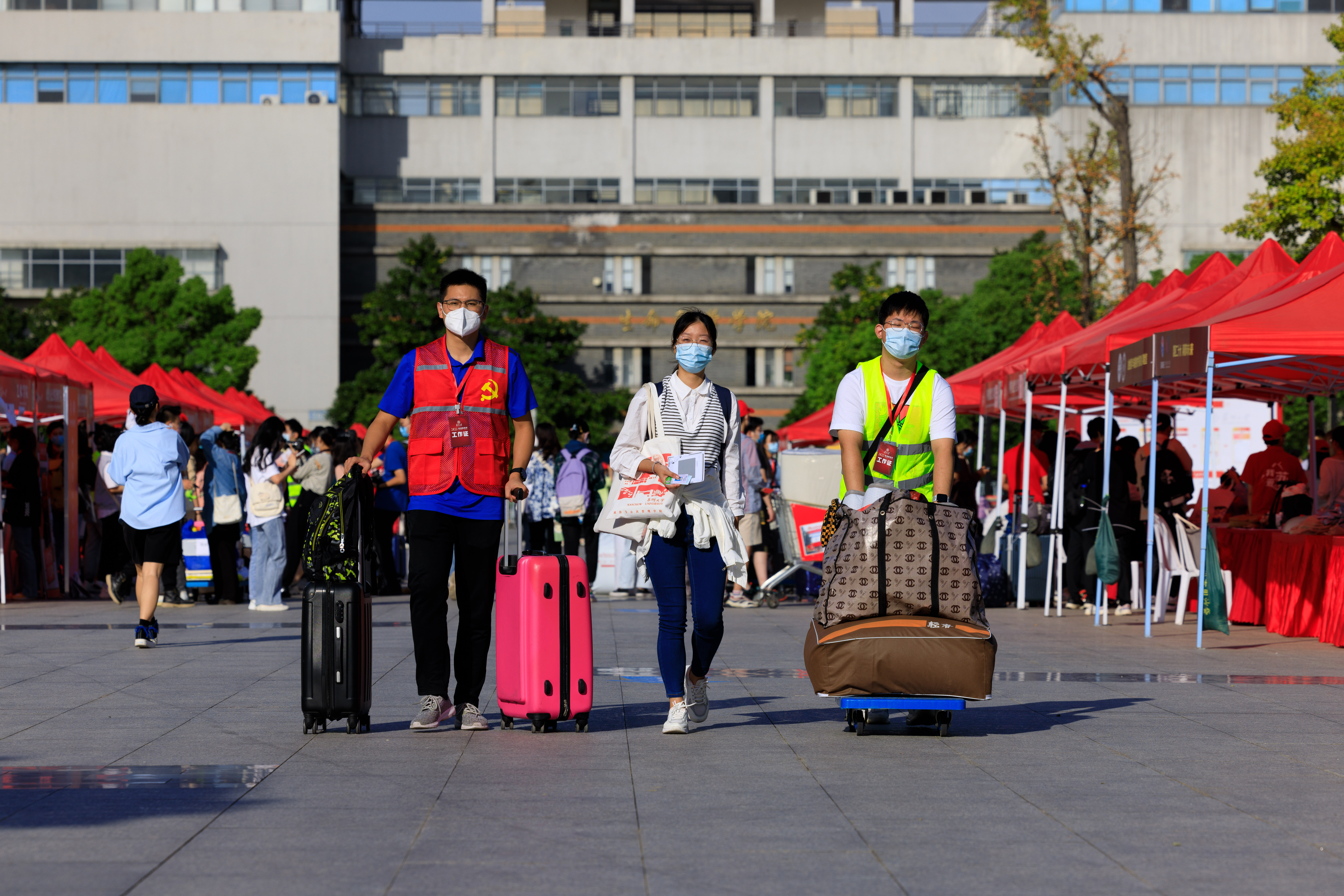 天光微亮,身穿“我爱雷速 (leisu)体育”红马甲的学生志愿者便等候在迎新点,看到新生前来报到便快步上前,热情周到帮助新生搬运行李、办理报到手续,各学院(部)的老师及相关职能部门的工作人员也在现场为新生提供周到服务。