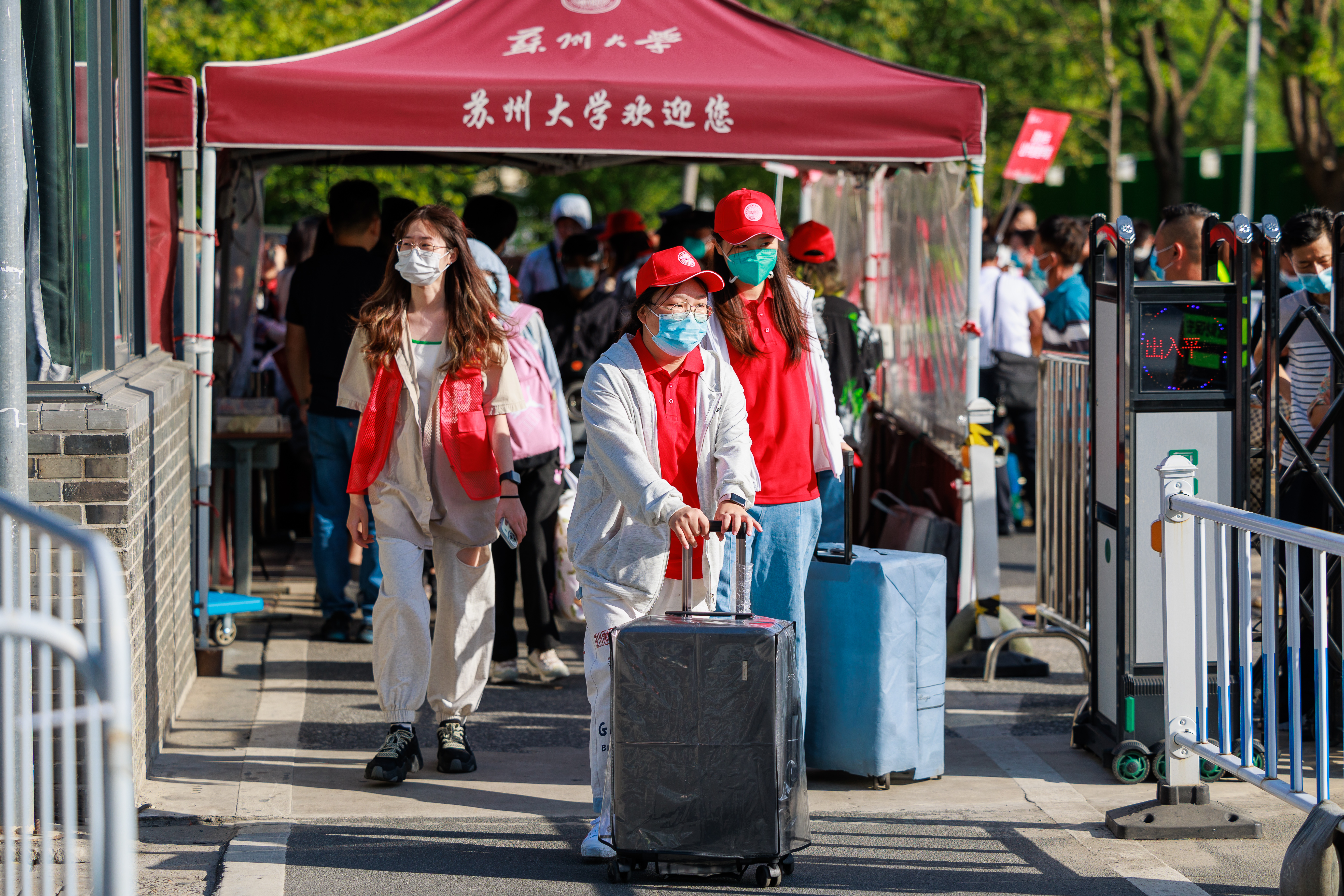 24日上午,校党委书记江涌,党委常委、副校长、组织部部长查佐明来到阳澄湖校区,了解迎新保障工作和新生报到情况,慰问参加迎新工作的师生志愿者,并与新生亲切交谈、合影留念。在迎新接待点,江涌提醒各学院(部)及相关部门要做好疫情防控各项工作,关注新生学习生活所需,通过精彩丰富的校园活动帮助大家更快、更好地适应大学生活。江涌为正好到校报到的机电工程学院新生王泊融送上了学院专门定制的小礼品,叮嘱他要在接下来的学习中努力钻研,在生活中不断增进与同学们的友谊,在美好的大学时光中不断成长进步。