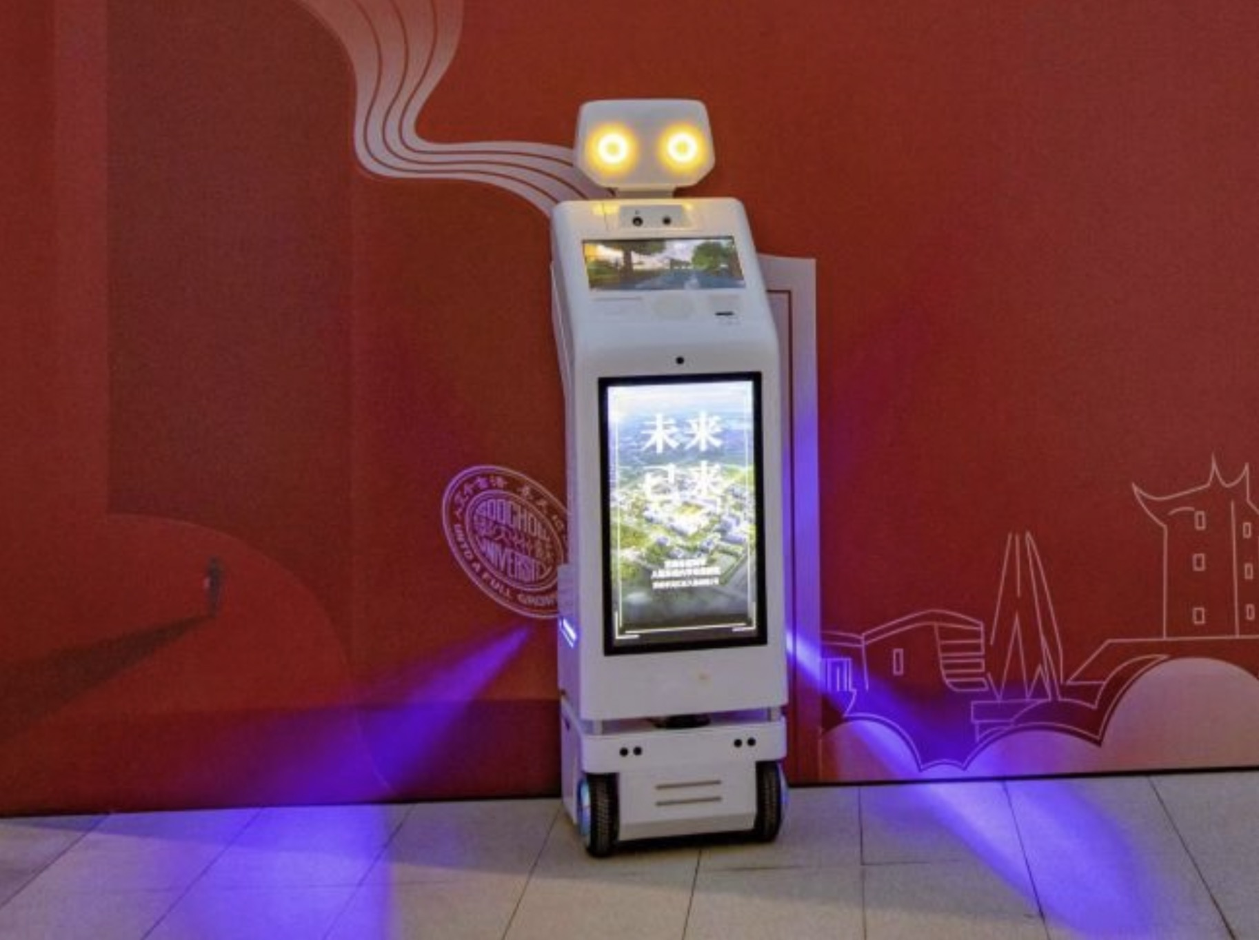 在未来校区,未来科学与工程学院布排了礼仪迎宾、接待递送、消毒安防等多款功能机器人,打造现代智能化科技校园场景,结合学院人工智能、机器人工程等专业特色,让“萌新”们在人机交互中切身感受现代智能化科技手段,激发对科技创新和专业学习的热情,提升创新意识、创新思维和实践能力。