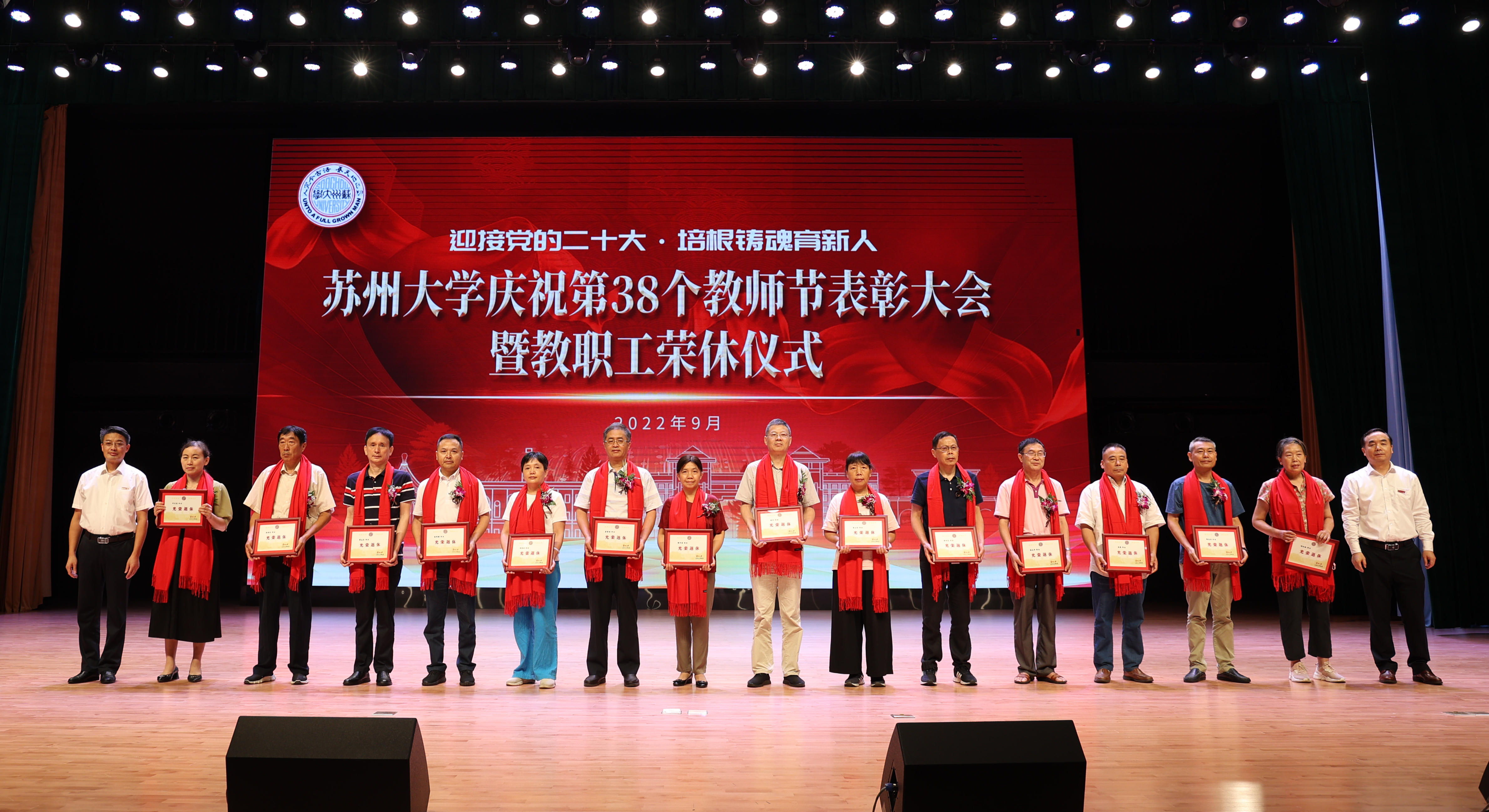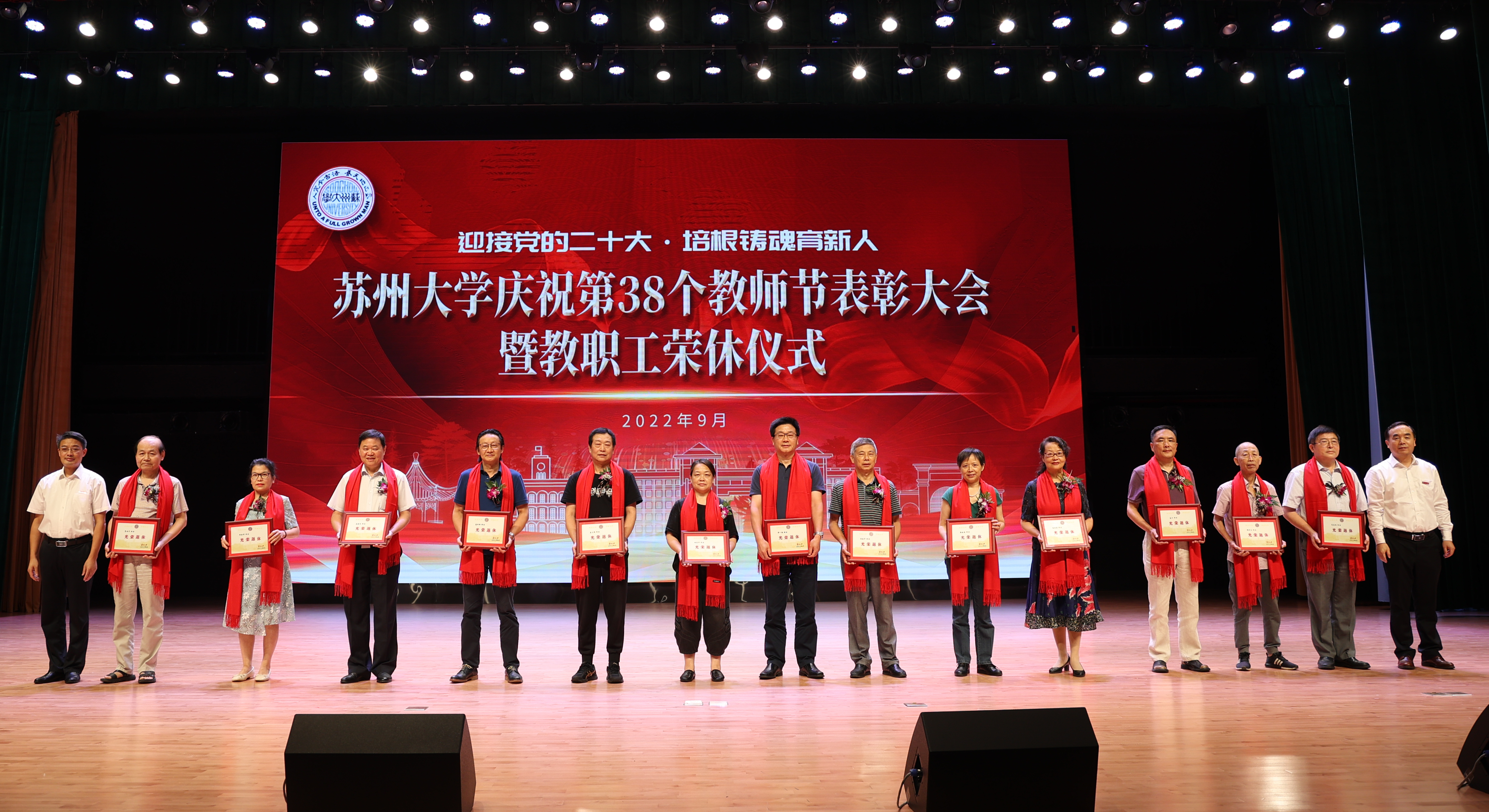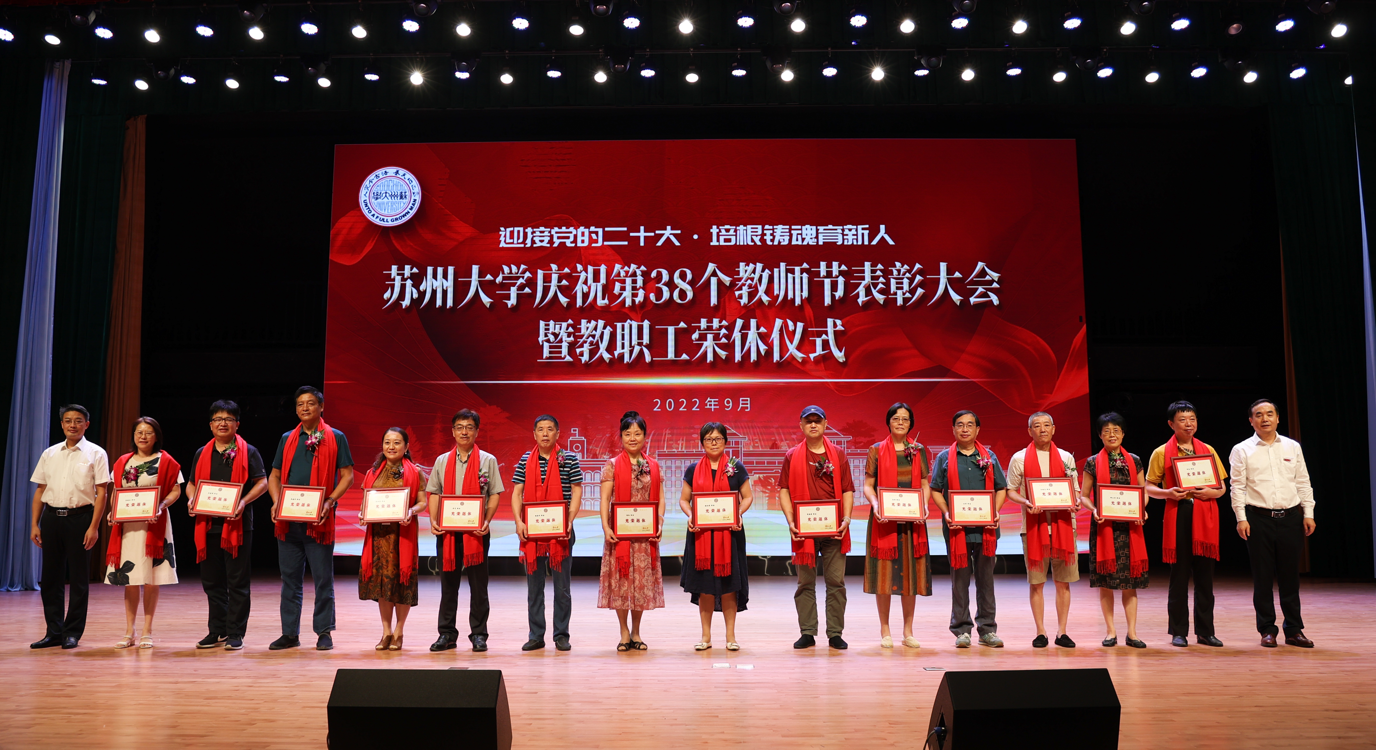 座谈会后,学校在存菊堂举行庆祝第38个教师节表彰大会暨教职工荣休仪式。校党委副书记、校长张晓宏,在校校领导,“高尚师德”奖教金获奖教师,荣休教职工及工作满30年的教职工代表,各学院(部)、部门、直属单位主要负责人以及师生代表等出席会议。会议由校党委副书记邓敏主持。