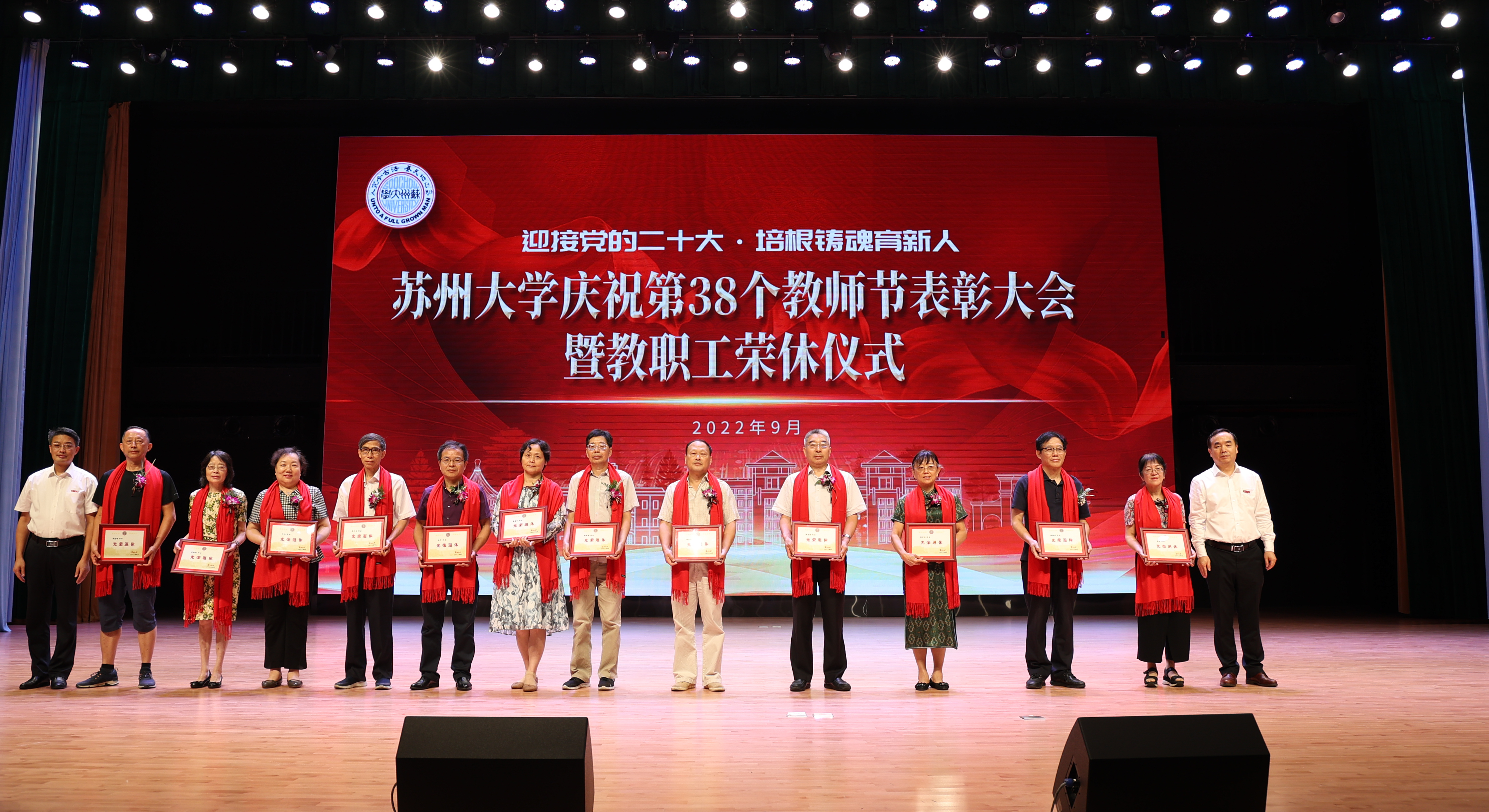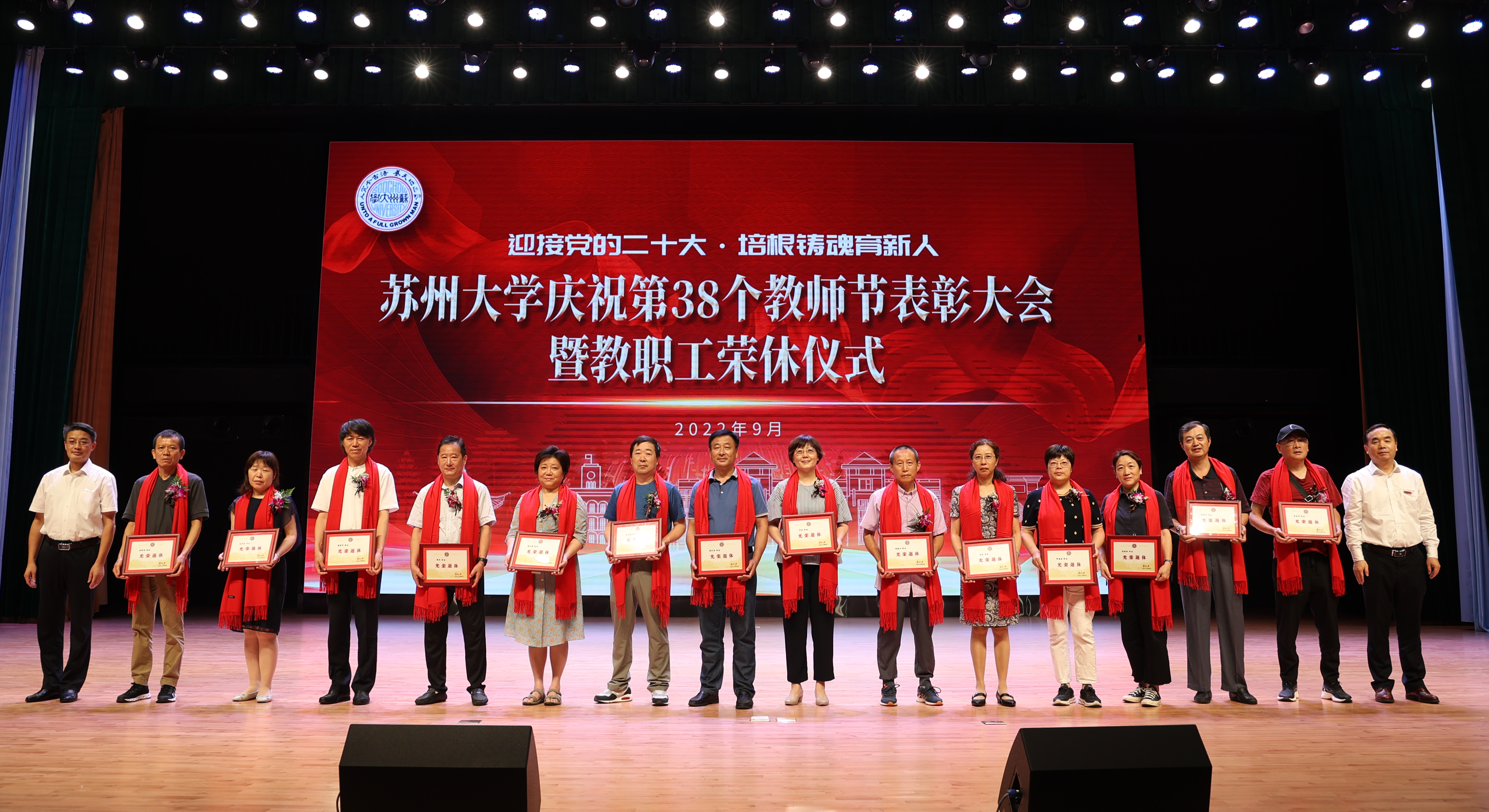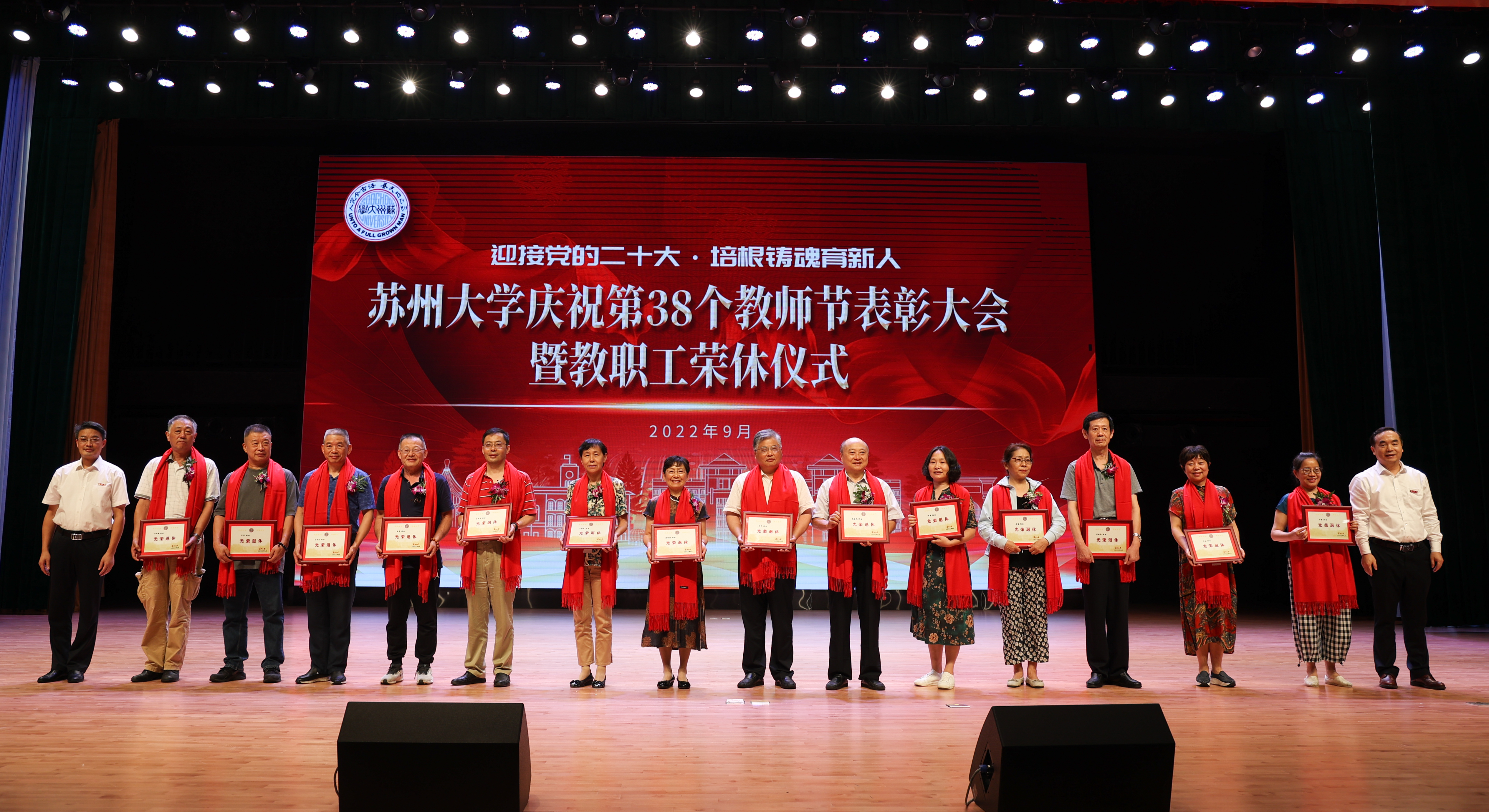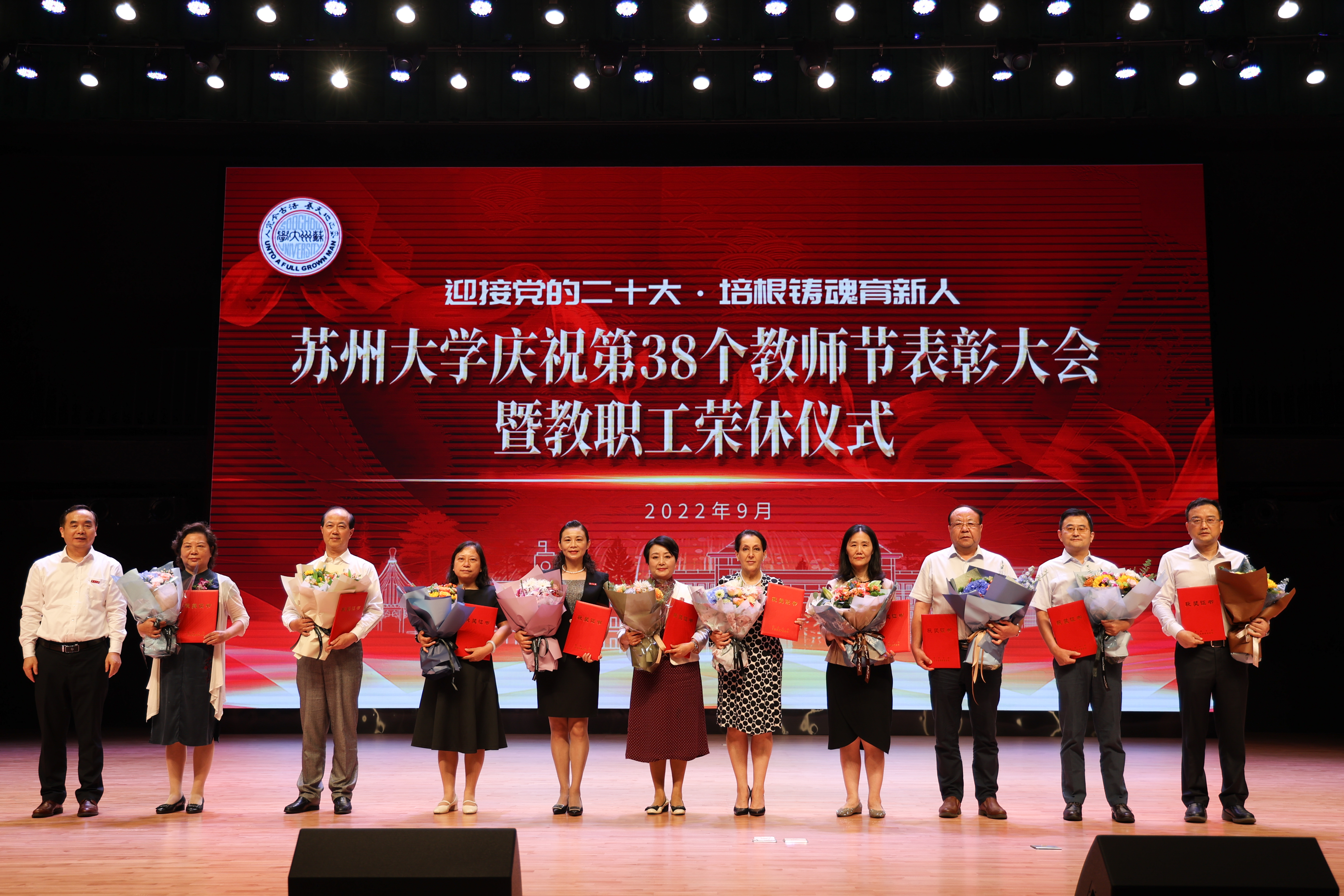 座谈会后,学校在存菊堂举行庆祝第38个教师节表彰大会暨教职工荣休仪式。校党委副书记、校长张晓宏,在校校领导,“高尚师德”奖教金获奖教师,荣休教职工及工作满30年的教职工代表,各学院(部)、部门、直属单位主要负责人以及师生代表等出席会议。会议由校党委副书记邓敏主持。