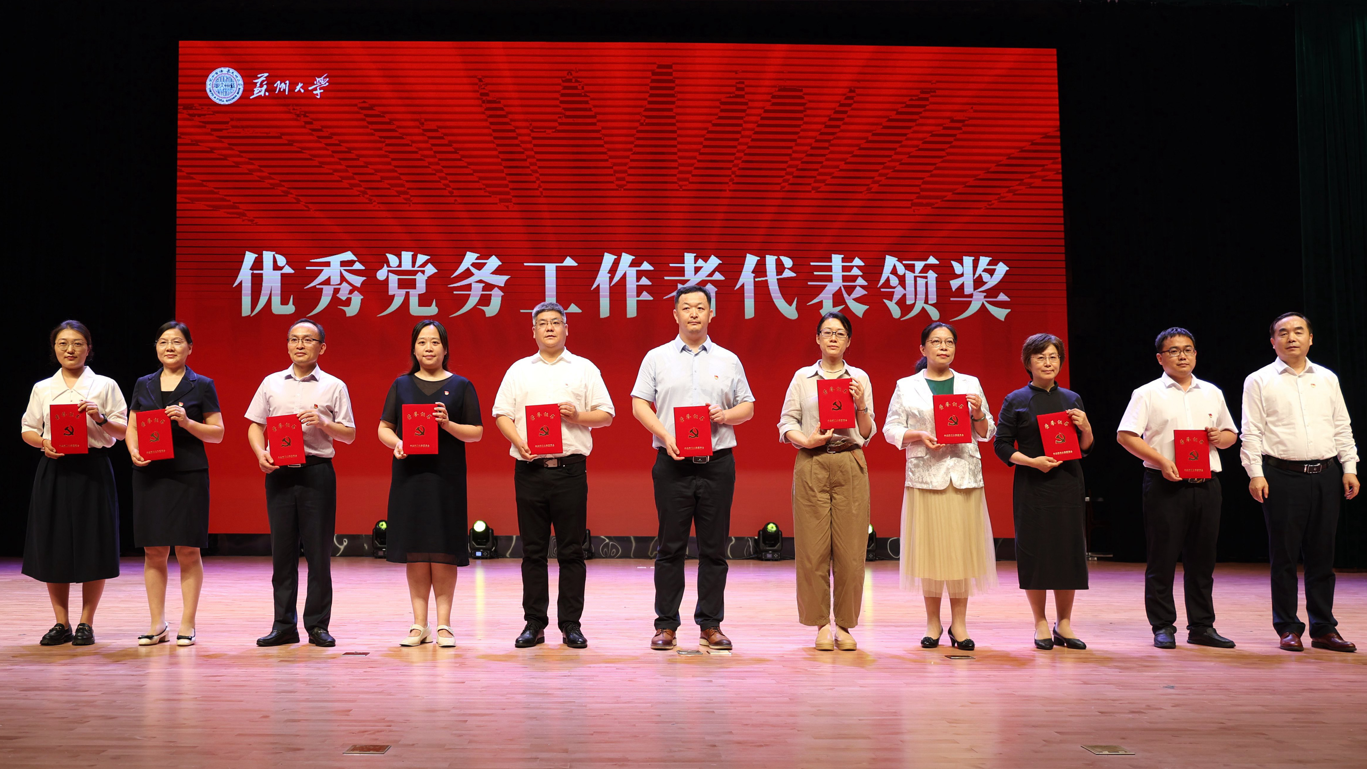校党委副书记、校长张晓宏为获得表彰的优秀共产党员、优秀党务工作者和先进基层党组织代表颁奖,并合影留念。