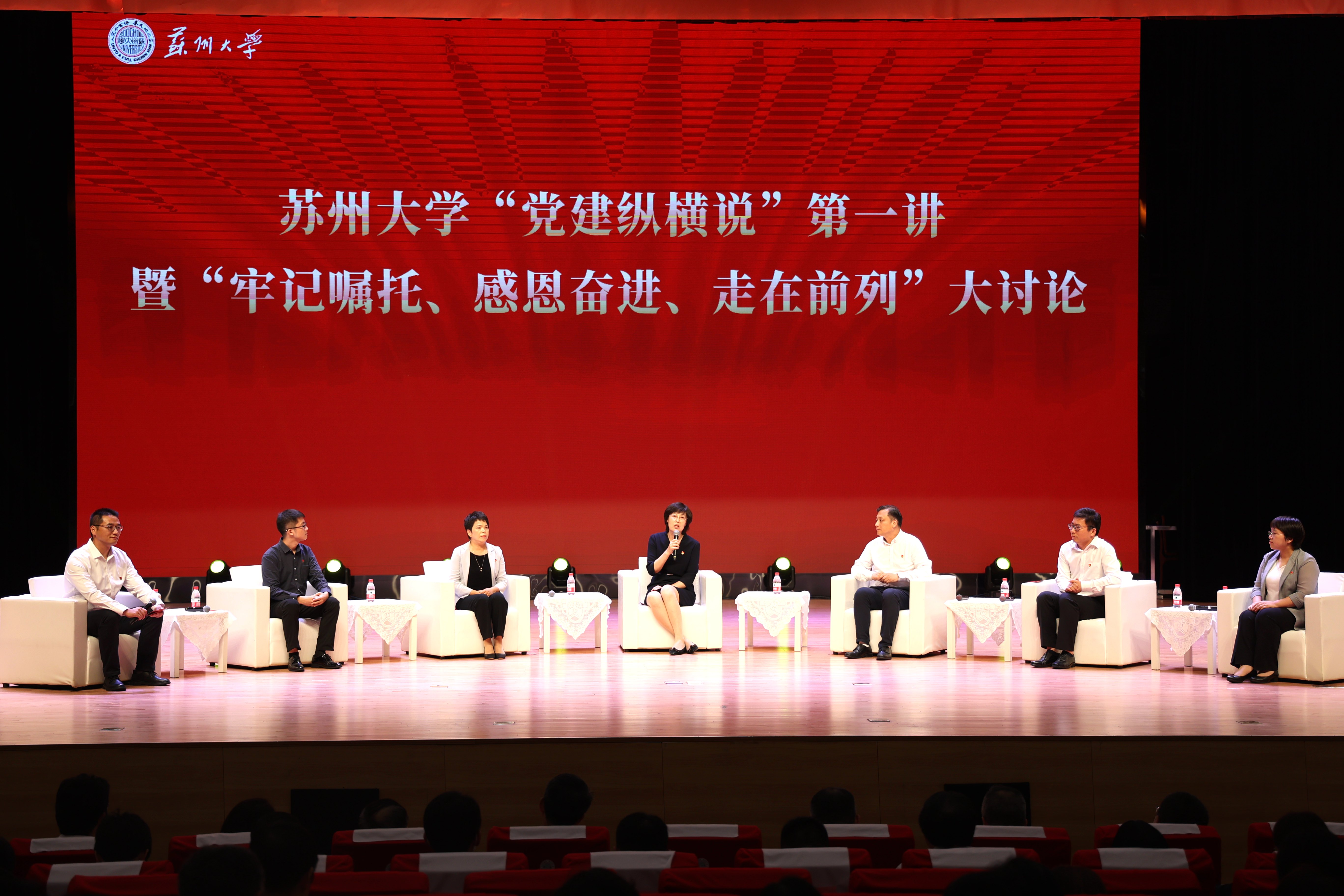 随后,在雷速 (leisu)体育“党建纵横说”第一讲中,党委组织部副部长程晓军主持并邀请6位不同身份的师生党员代表共坐一堂,紧紧围绕“牢记嘱托、感恩奋进、走在前列”这一主题,展开了一场热烈生动的发展大讨论,从不同视角作了精彩分享。