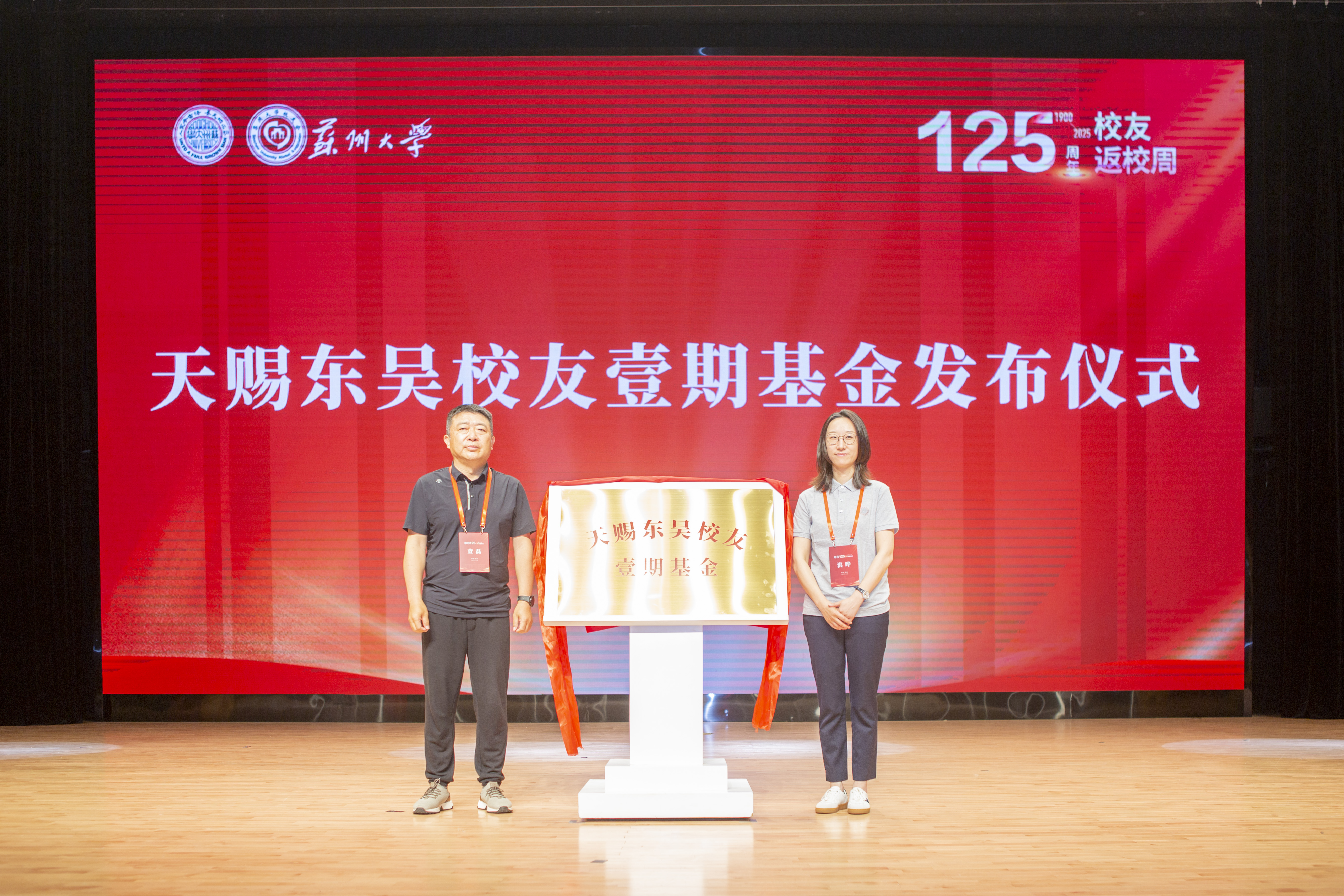 为进一步凝聚广大校友的力量,充分打通学校科研成果转化的“最后一公里”,会上,天赐东吴校友壹期基金正式发布。天赐东吴校友壹期基金发起人、1987级校友、计算机校友会常务副会长、中安科股份有限公司董事、总裁查磊与洪晔共同登台揭幕。