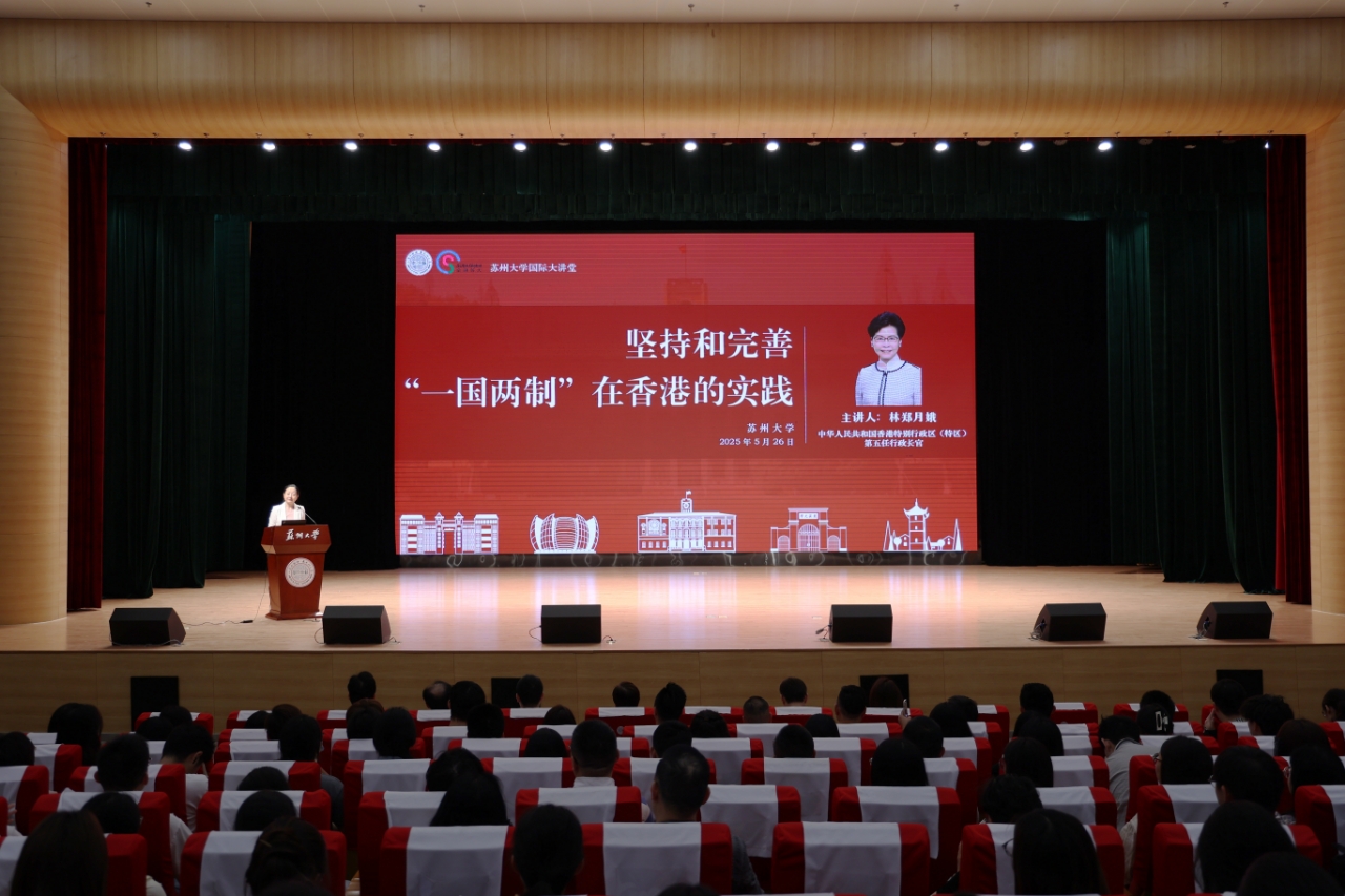 会见后,林郑月娥在学校存菊堂以《坚持和完善“一国两制”在香港的实践》为题发表演讲。结合自身履职经历,她系统回顾了“一国两制”产生的历史背景和实践历程,从政治、经济、社会等多个维度论证了“一国两制”是中国特色社会主义的伟大创举,是香港保持长期繁荣稳定的最佳制度安排。她表示,有“一国两制”保驾护航,香港一定能更好地发挥“背靠祖国,联通世界”的优势,积极融入国家发展大局。讲座中,她还介绍了香港打造国际高端人才集聚高地的发展规划及吸引海内外人才的具体举措,诚挚邀请广大青年学子赴港学习、就业和发展,携手为强国建设、民族复兴贡献智慧与力量。