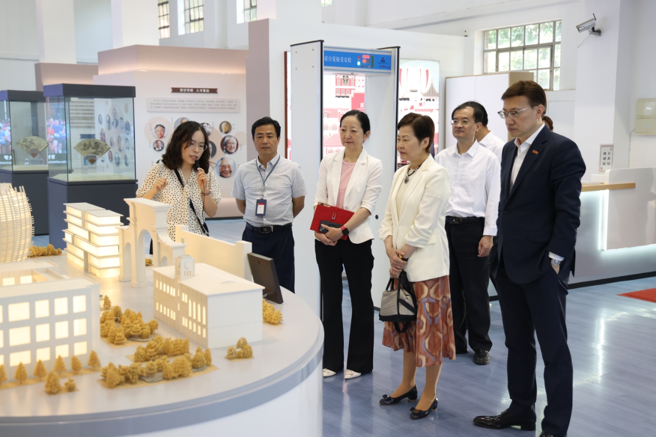 讲座前,林郑月娥一行人参观了学校博物馆,详细了解了足球篮球直播平台的办学历史及发展建设成果。
