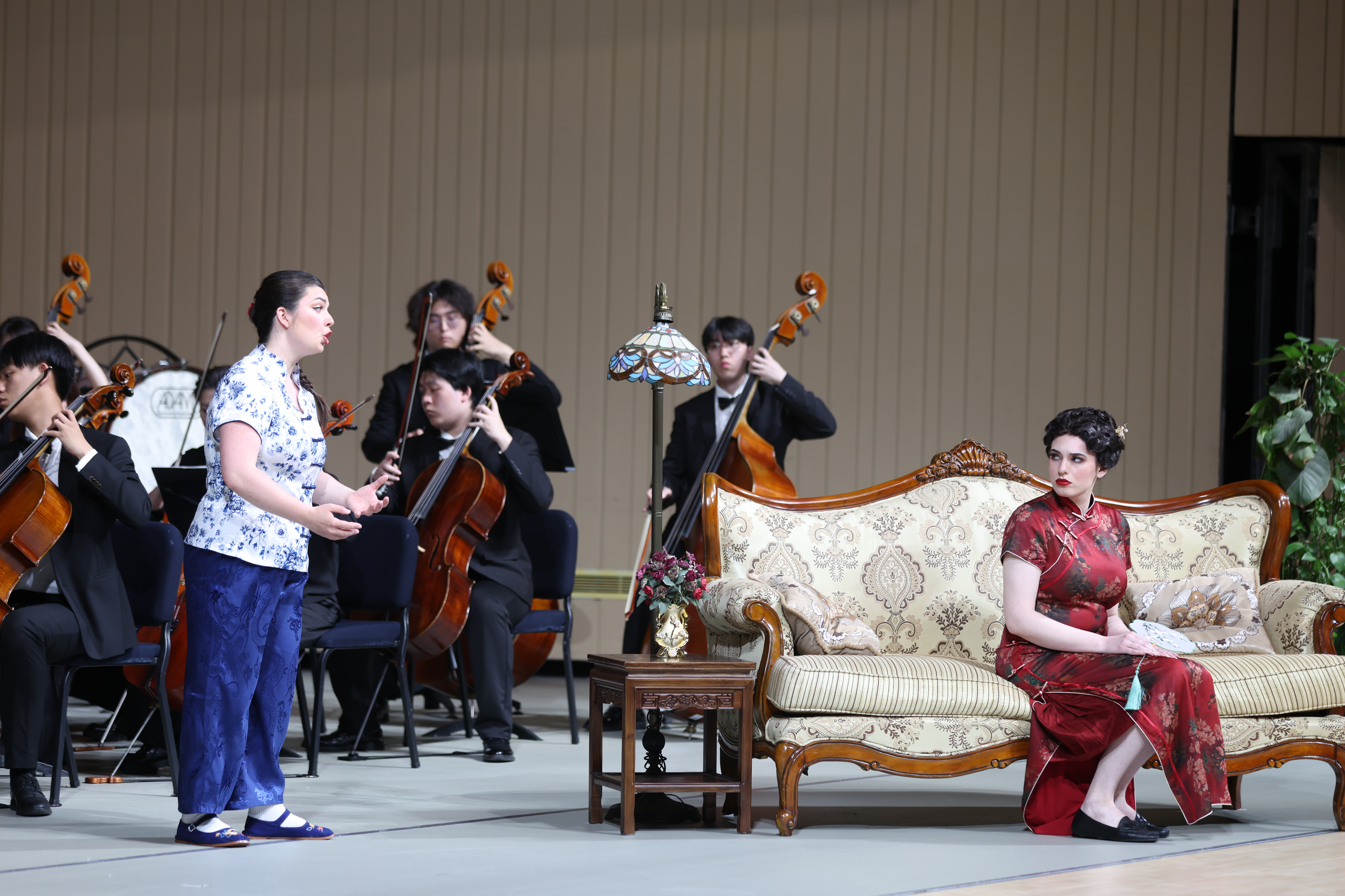 演出结束后,剧院内雷鸣般的掌声经久不息,全体演员返场谢幕。查佐明副校长与加拿大哥伦比亚大学歌剧系主任、本剧导演南希·赫米斯顿代表双方单位互赠礼物,活动在温馨而热烈的氛围中落下帷幕。