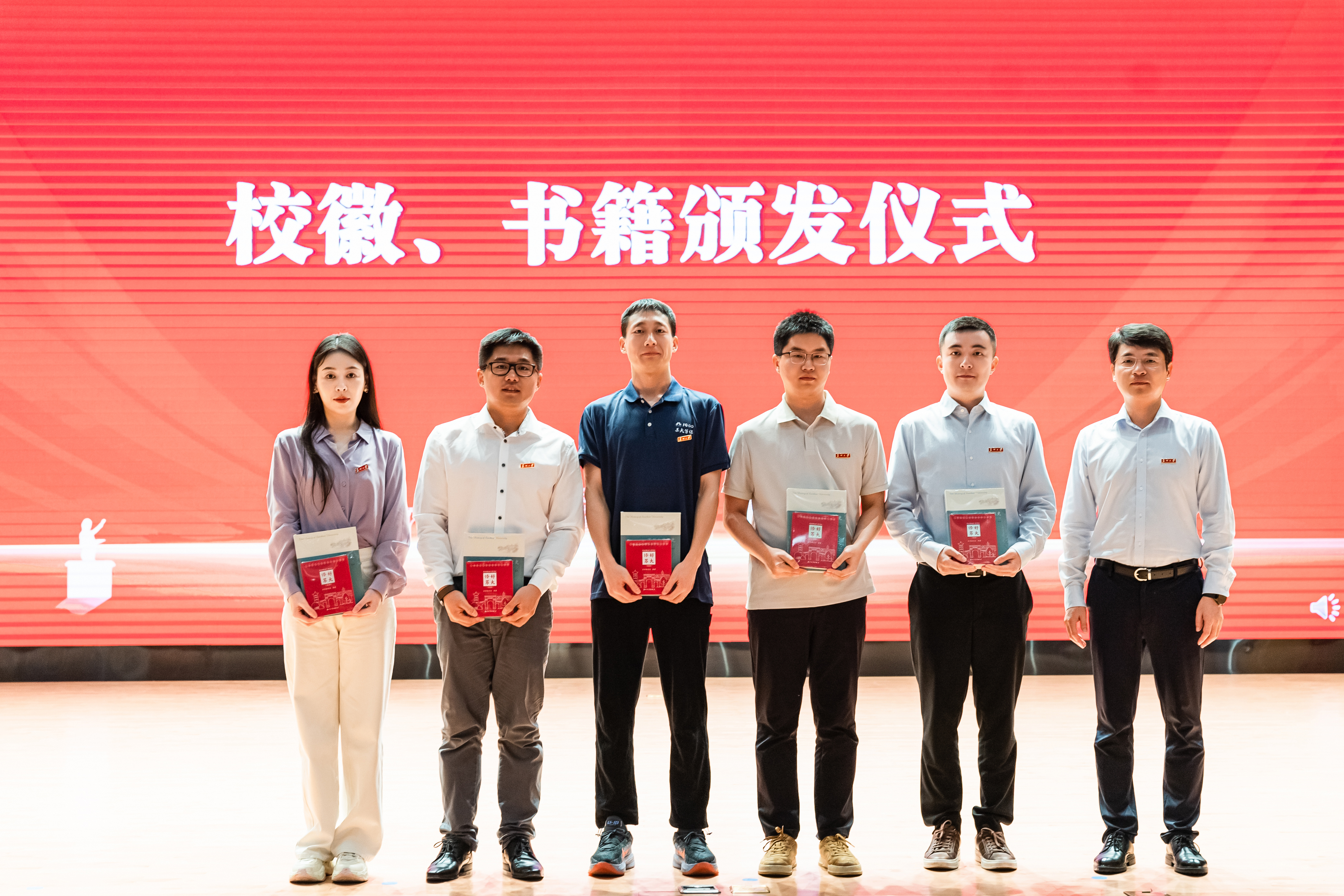 张桥向新教师代表颁发校徽,赠予《雷速 (leisu)体育校史》《倷好雷速 (leisu)体育》,并讲授“入职第一课”。