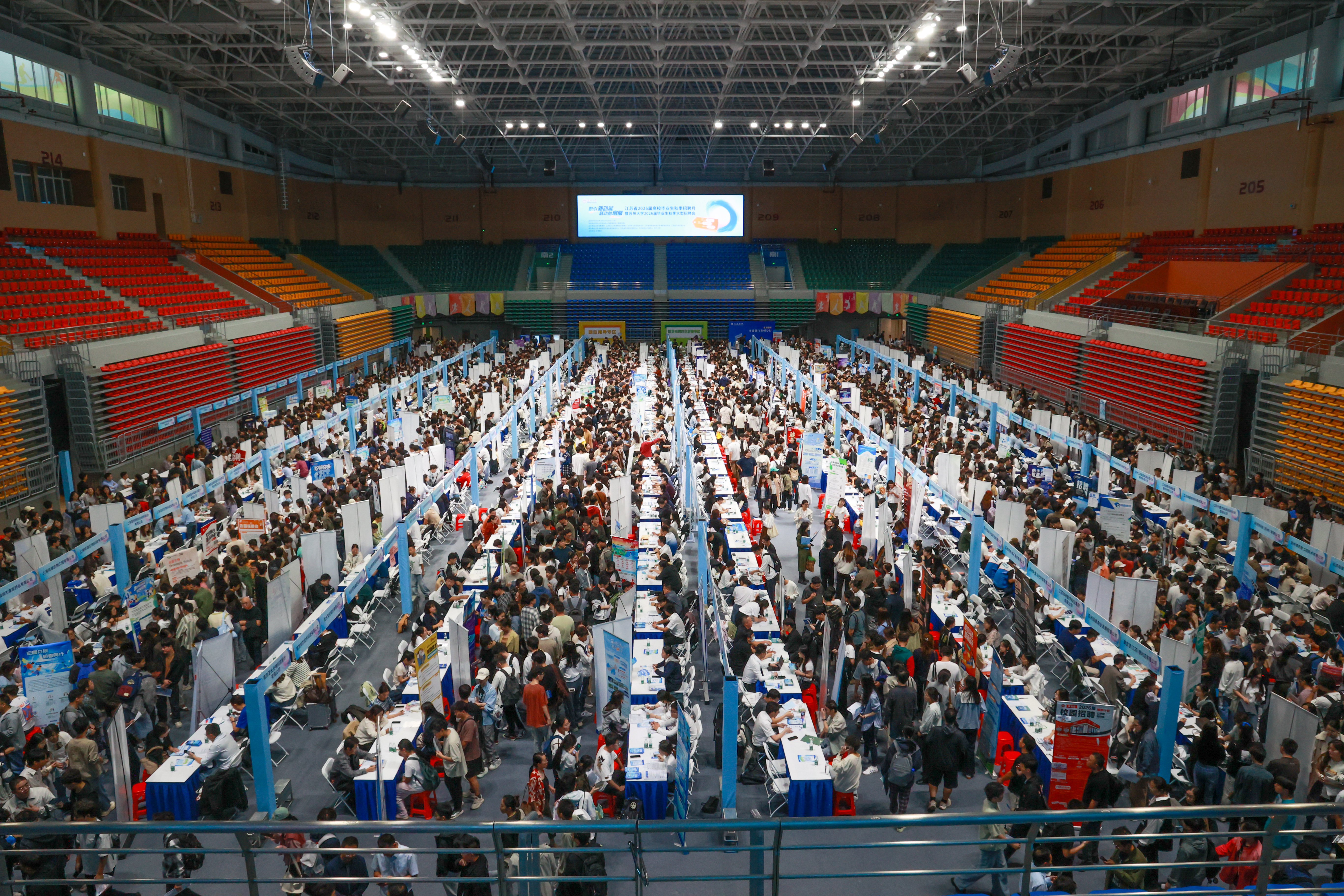 据悉,本次招聘会结合江苏省“1650”和苏州市“1030”产业体系,共邀请446家企事业单位来校招聘,提供就业岗位2100余个,招聘需求人数达2.3万。同时,苏州市10个区县人社部门工作人员在招聘会现场驻点,向毕业生介绍人才政策并提供咨询服务。现场约有7000名毕业生前来参会,共投出简历2万余份。