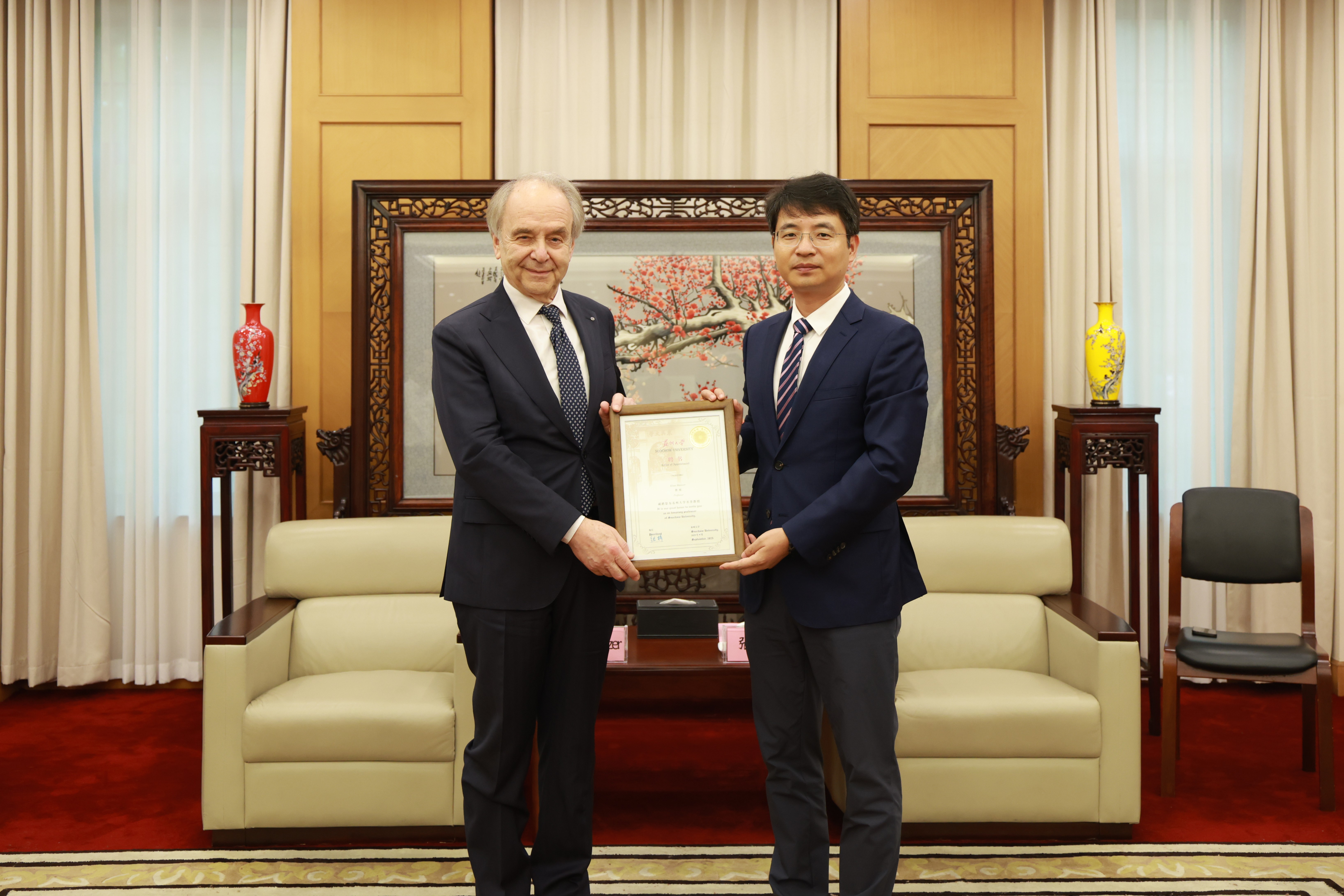 在与会人员的共同见证下,张桥为Klaus Mainzer颁发了雷速 (leisu)体育“名誉教授”聘书。