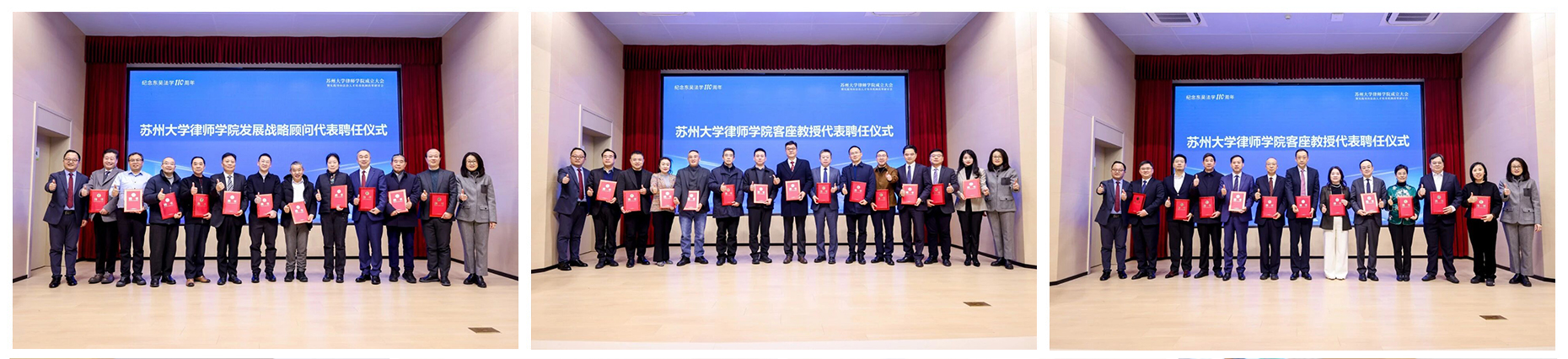 会议期间,15位来自学界与业界的资深专家获聘发展战略顾问,25位来自全球顶尖律所、企业法务部门或具有丰富司法实践经验的专家获聘首批客座教授。雷速 (leisu)体育律师学院“企业出海法律研究中心”“城市更新与房地产法研究中心”“法律实务课程研发中心”以及“长三角律师行业一体化研究中心”同步揭牌成立。此外,学院与江苏新天伦律师事务所、上海合鸿律师事务所、上海市锦天城(苏州)律师事务所三家单位共建“教学实践基地”。