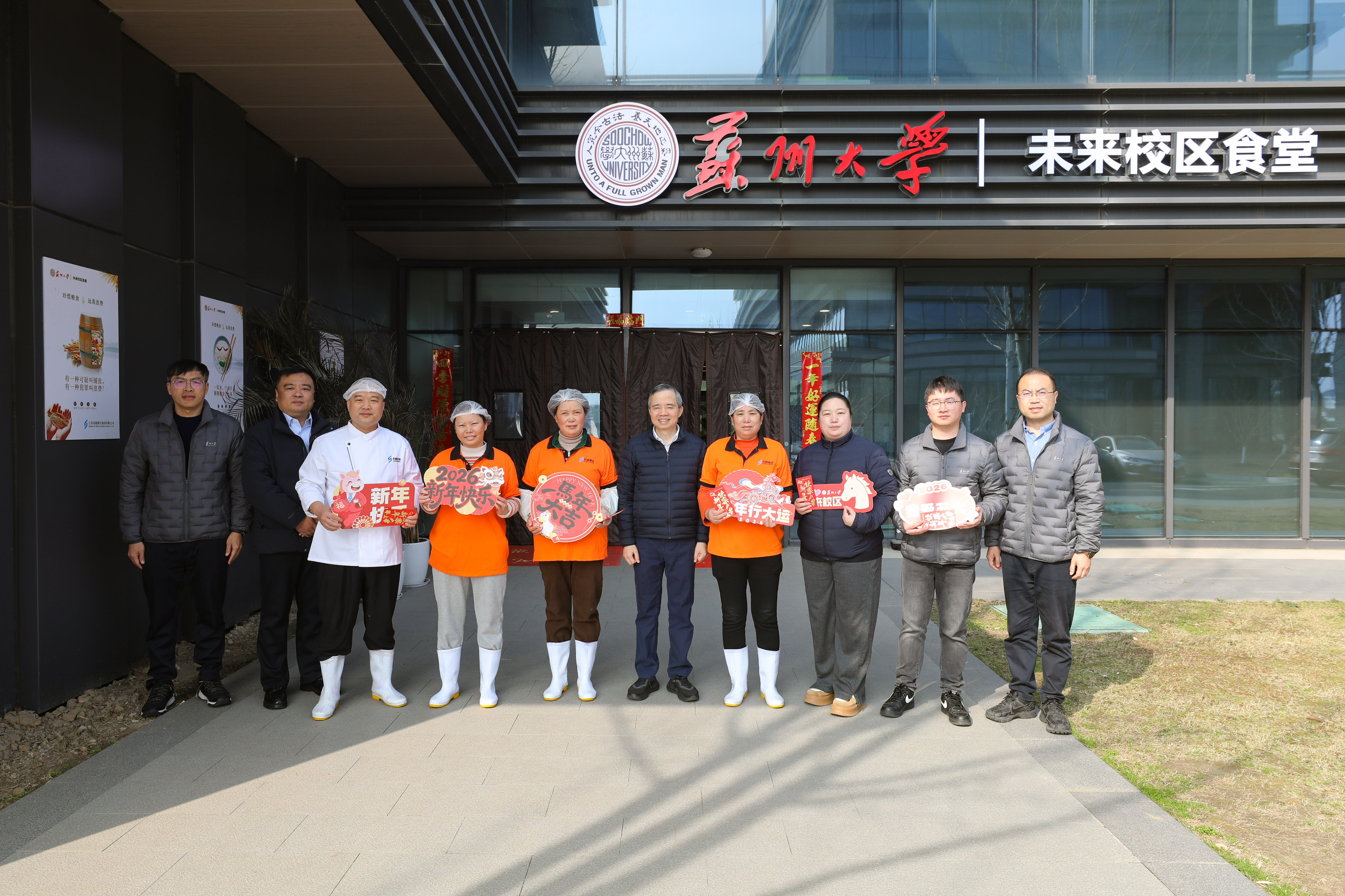 张桥和查佐明率队前往独墅湖校区慰问了春节期间坚守一线的工作人员和留校学生。在校门、食堂、宿舍等地,校领导向在岗员工致以诚挚感谢,并送上新春祝福,同时鼓励大家继续发扬优良作风,细化服务保障,确保寒假期间校园安全稳定。在学生宿舍,校领导还看望了留校学生,关切询问了他们的科研进展和学习生活情况,并送上新年礼包,嘱咐他们合理安排学习生活,以饱满的精神状态,在新的一年取得更优异的成绩。