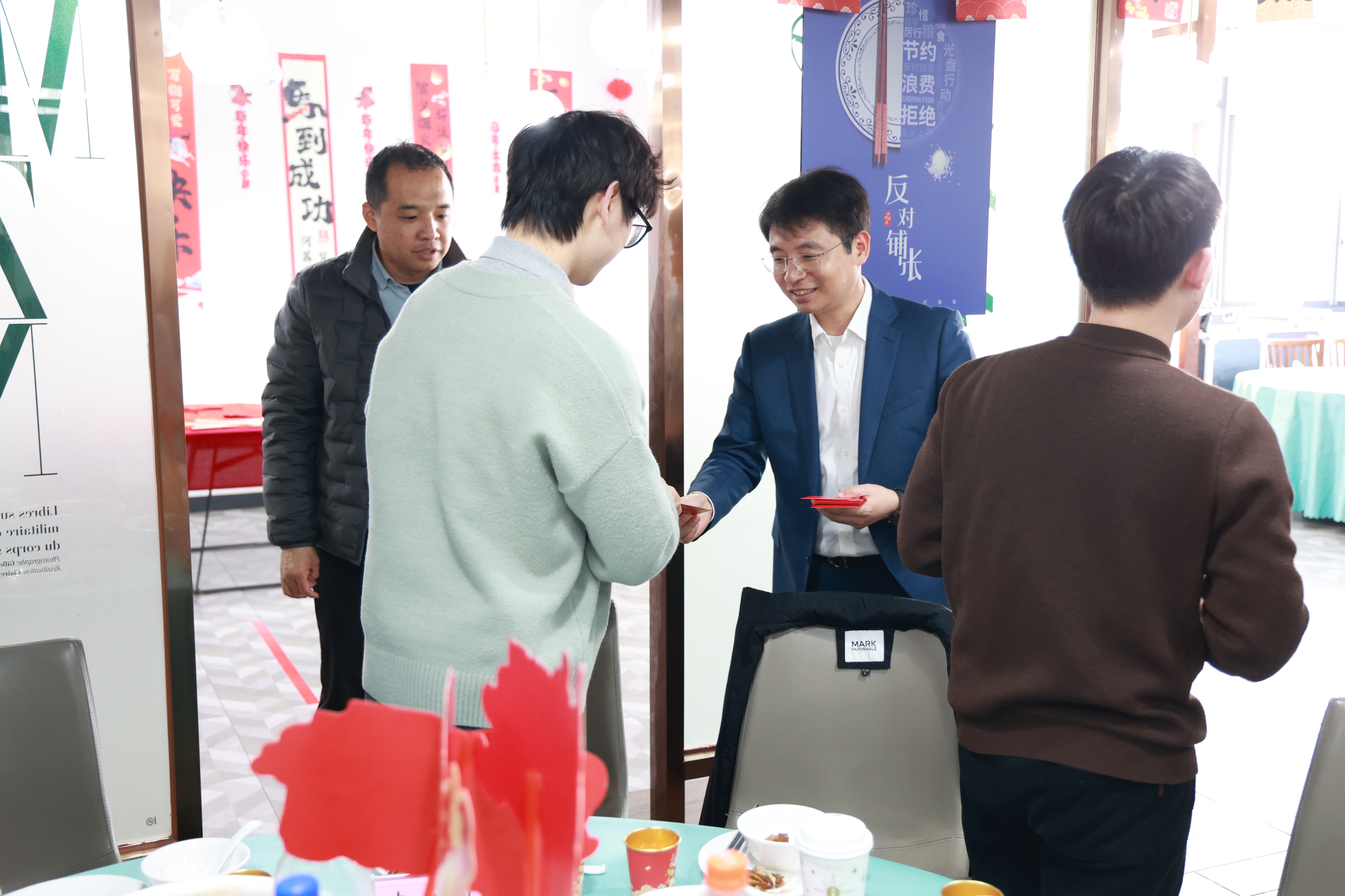 为让留校学生感受到家的温暖,2月15日中午,学校精心筹备了春节留校学生团圆饭活动,张桥、查佐明以及相关职能部门负责人与留校学生欢聚一堂、共迎新春。