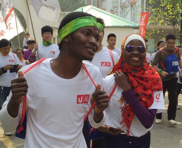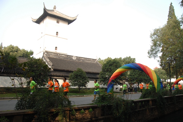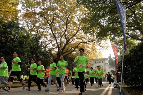 随着陈一星副校长手持发令枪“砰”的一声鸣响,在一片欢呼声中,参加迷你赛和半程赛的选手们身着统一标有参赛序号的T恤,从钟楼起跑点出发,志气盎然、挑战自我。