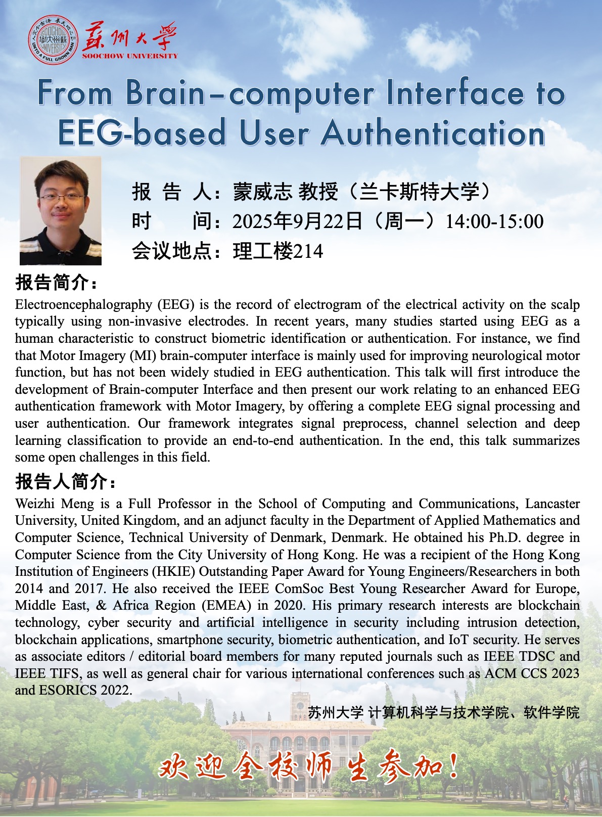 学术报告:From Brain-computer Interface to EEG-based User Authentication