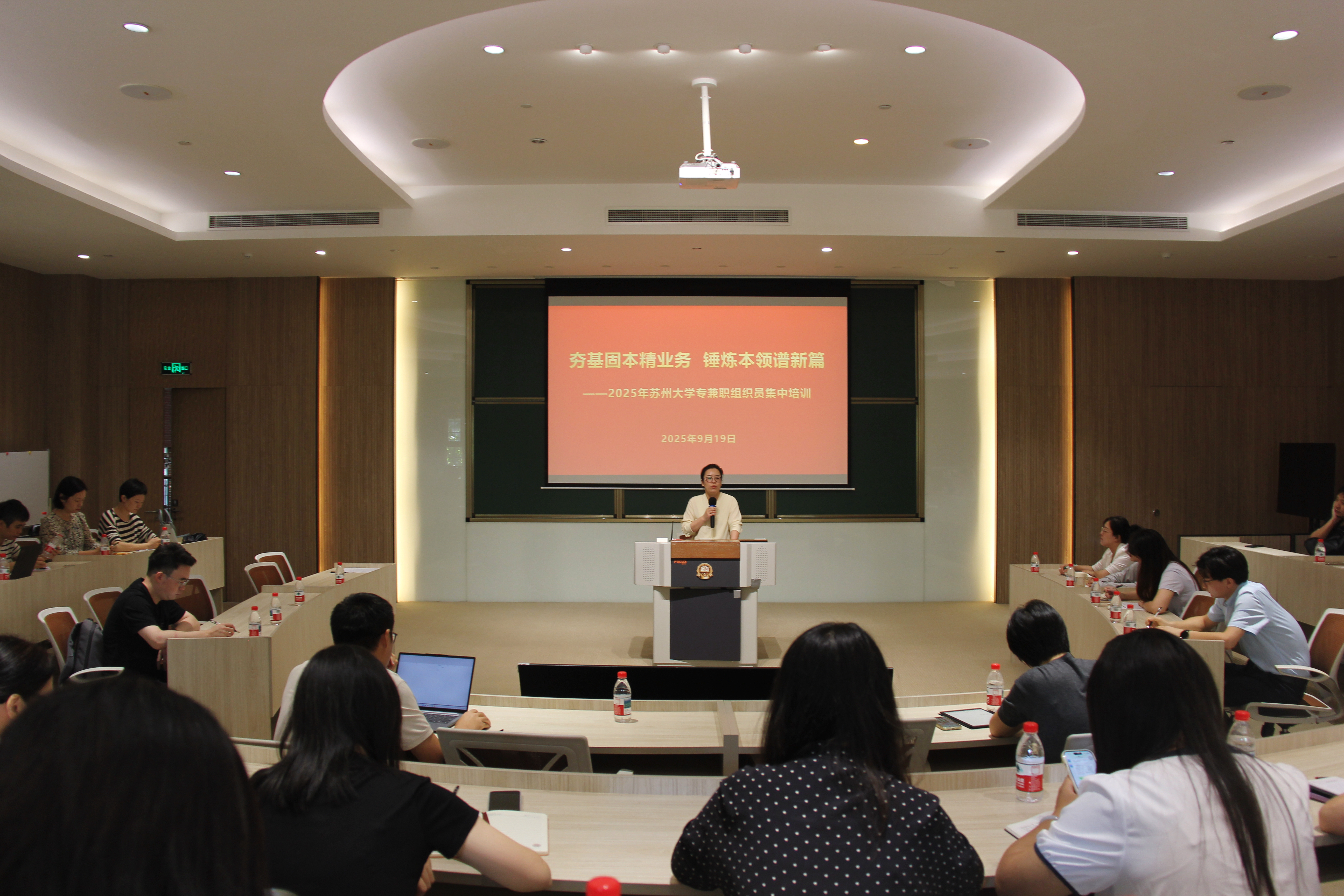 为推动基层党建工作走深走实,切实把队伍优势转化为发展动能,以高质量党建引领学校高质量发展。9月19日,党委组织部“夯基固本精业务 锤炼本领谱新篇”2025年苏州大学专兼职组织员集中培训举行。培训由党委组织部副部长、党校副校长薛曦主持。