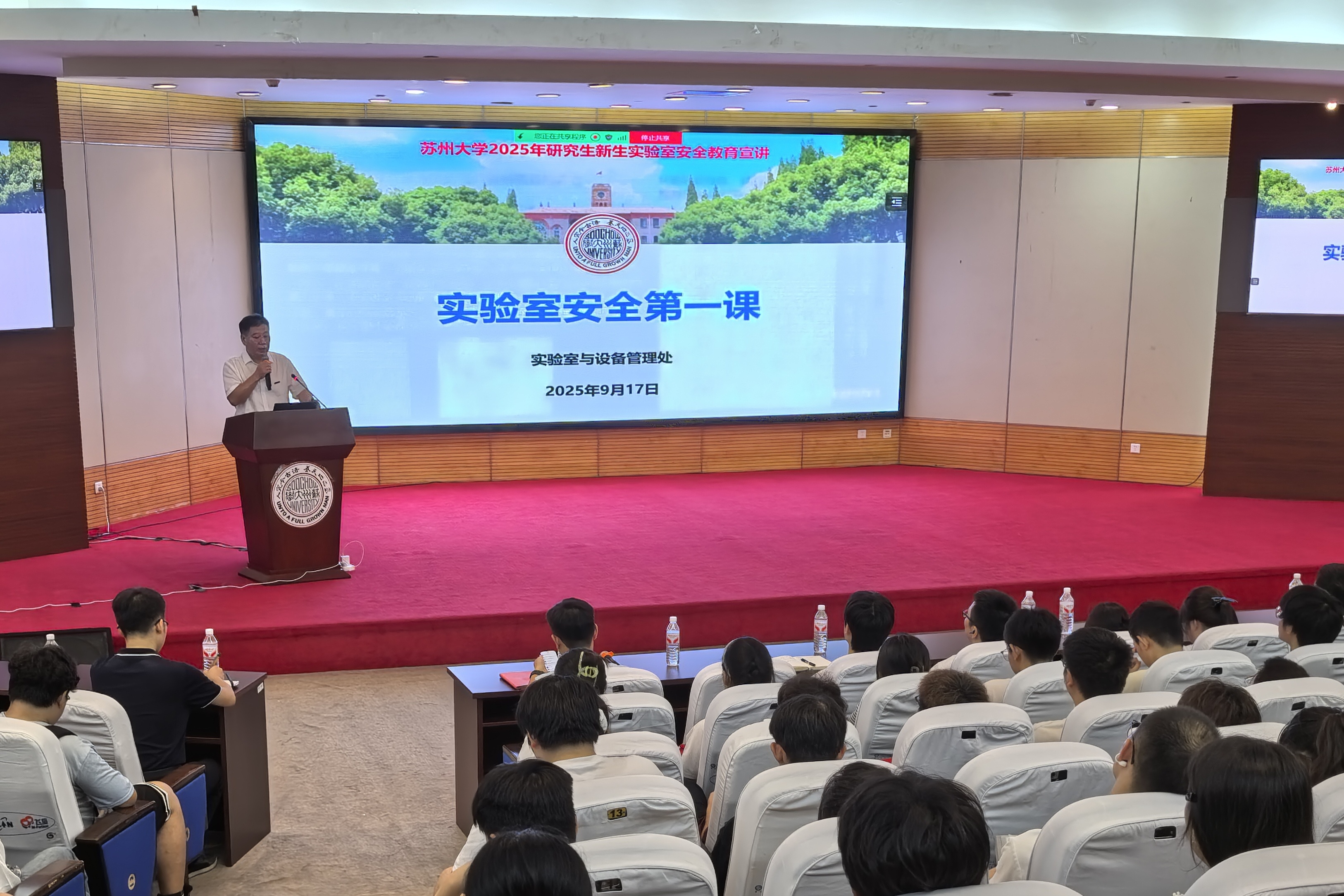9月17日,实验室与设备管理处联合党委学生工作部组织开展2025年研究生新生“实验室安全第一课”专题培训。本次培训采取“一主多分”会场模式,设1个校级主会场及28个二级单位分会场,共计2700余名研究生新生参与培训。