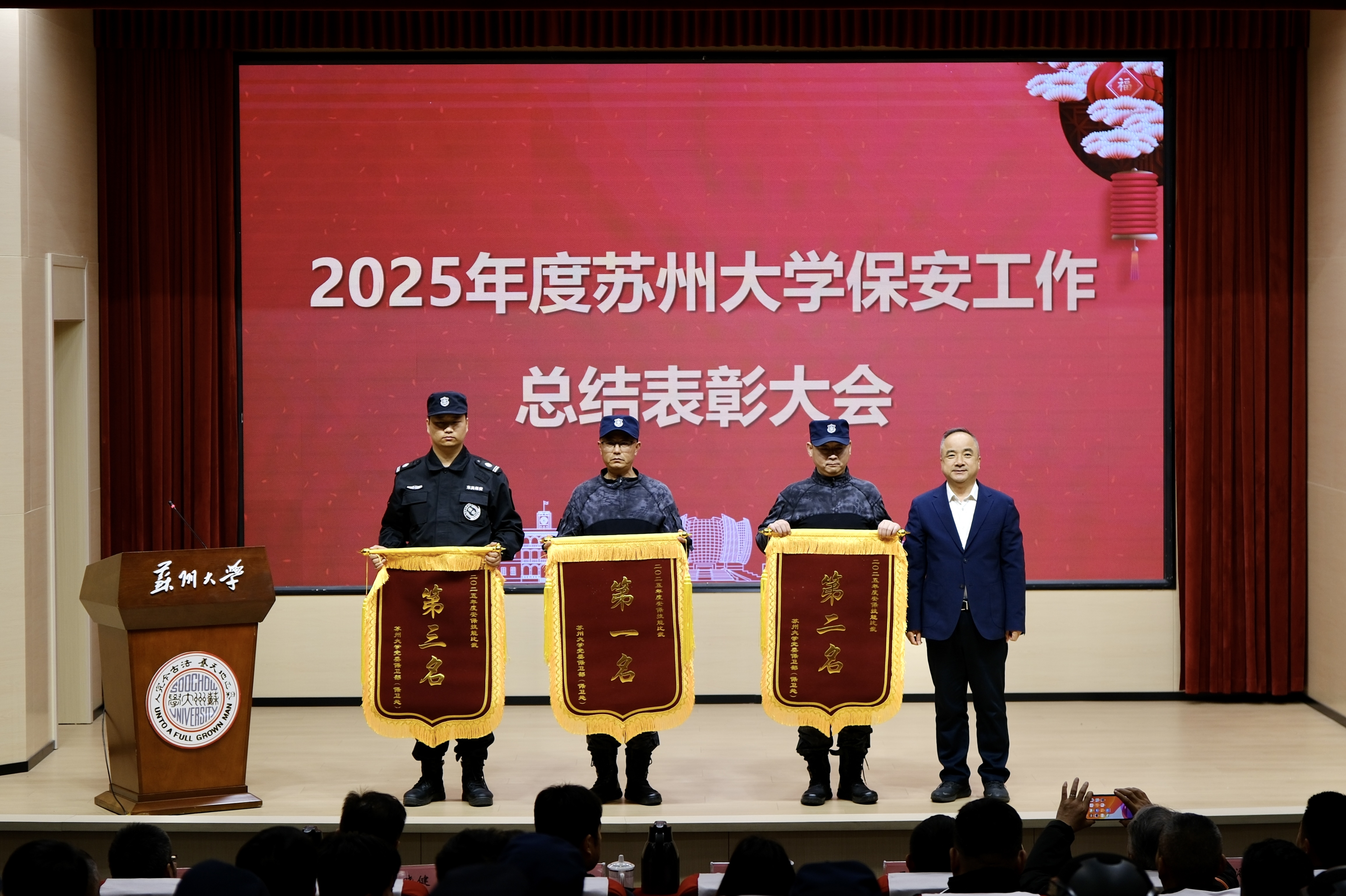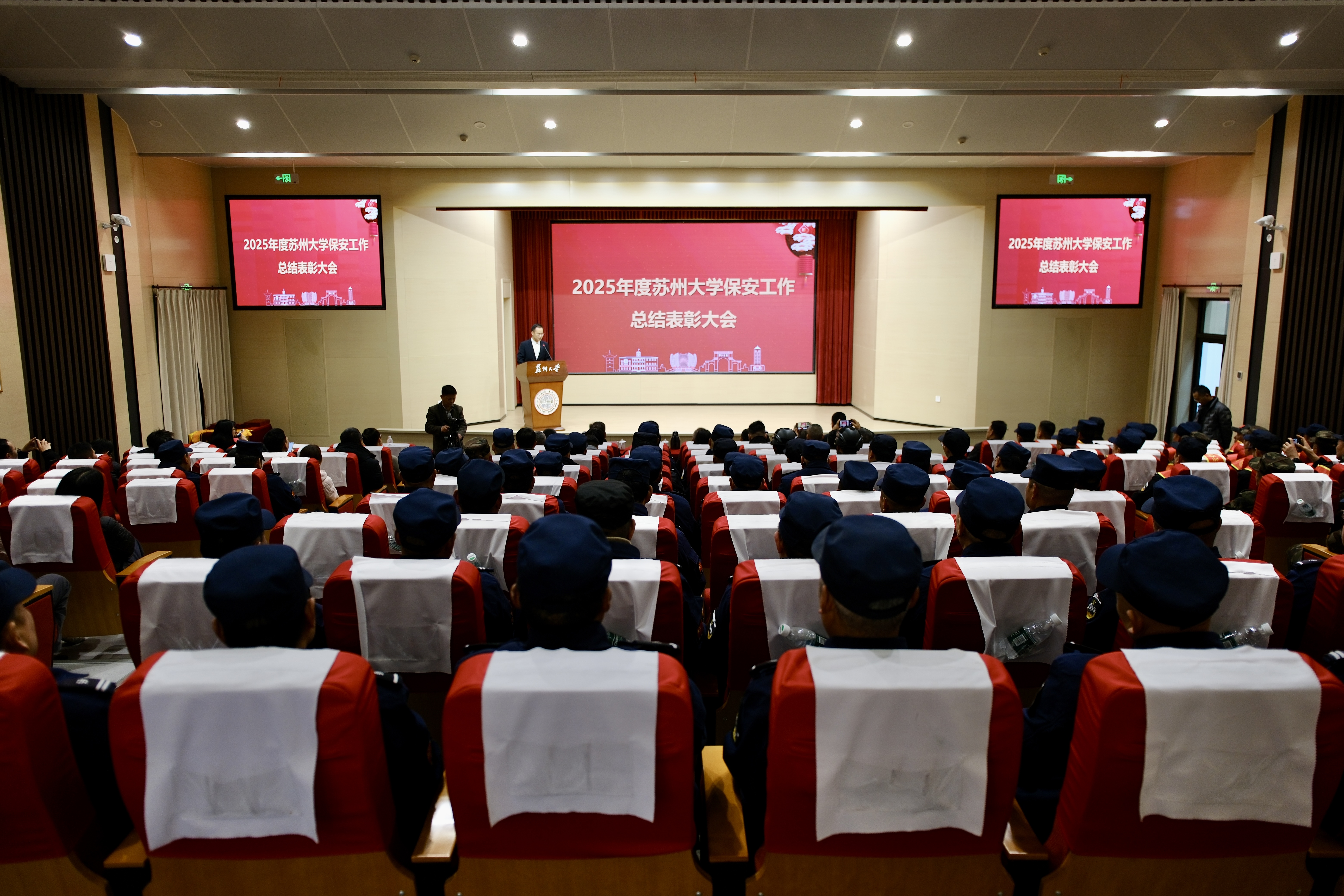 为深入推进更高水平平安校园建设,切实提升足球篮球直播平台安保队伍的专业技能与应急处突能力,强化先进典型的示范引领,1月13日,足球篮球直播平台在天赐庄校区召开2025年度保安工作总结表彰大会。校党委常委、副校长查佐明,来自苏州市公安局姑苏分局双塔派出所、葑门派出所、娄门派出所、江苏营财安保股份有限公司、东吴服务产业集团(江苏)有限公司的相关负责人出席会议,党委保卫部(保卫处)全体成员及各校区保安人员代表参加会议。