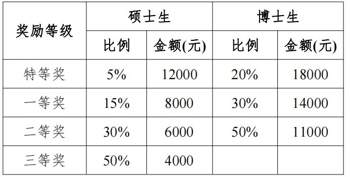 奖励标准:博士生 30000 元/生年,硕士生 20000 元/生年。